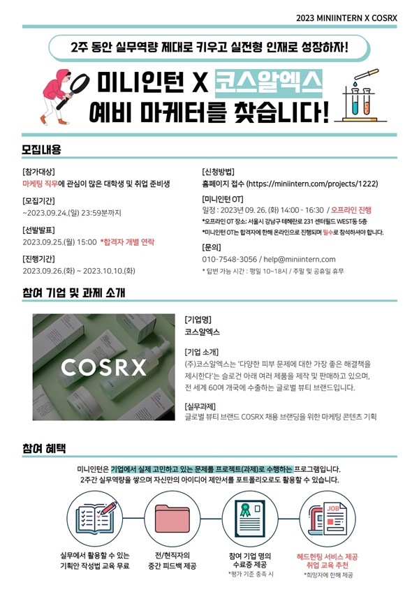 [미니인턴X코스알엑스] 무궁무진 콘텐츠 마케팅! 코스알엑스의 채용 마케팅 콘텐츠 기획하고 포트폴리오 업그레이드!