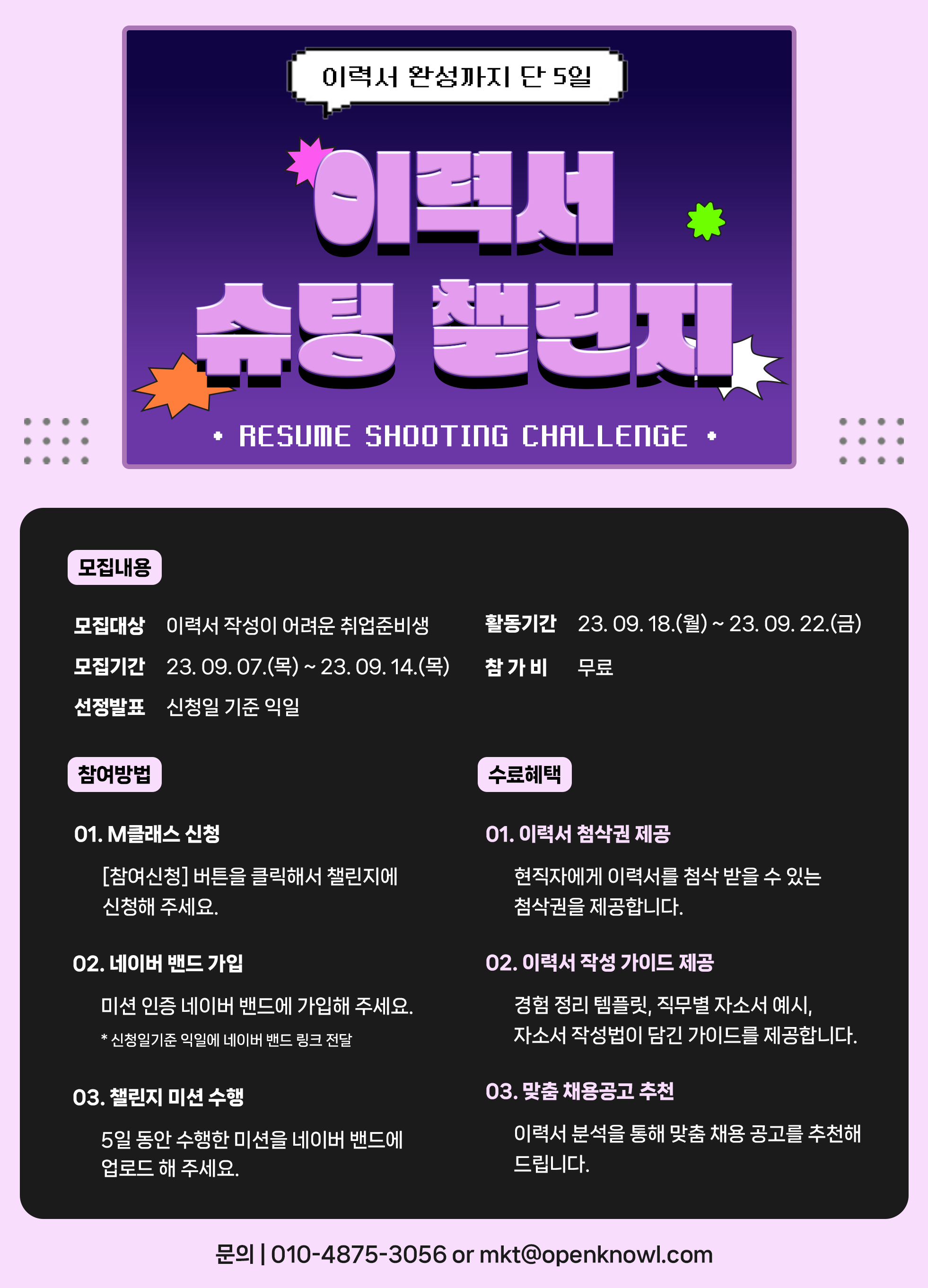 [오픈놀] 미니인턴 이력서 슈팅 챌린지 2기 홍보 안내
