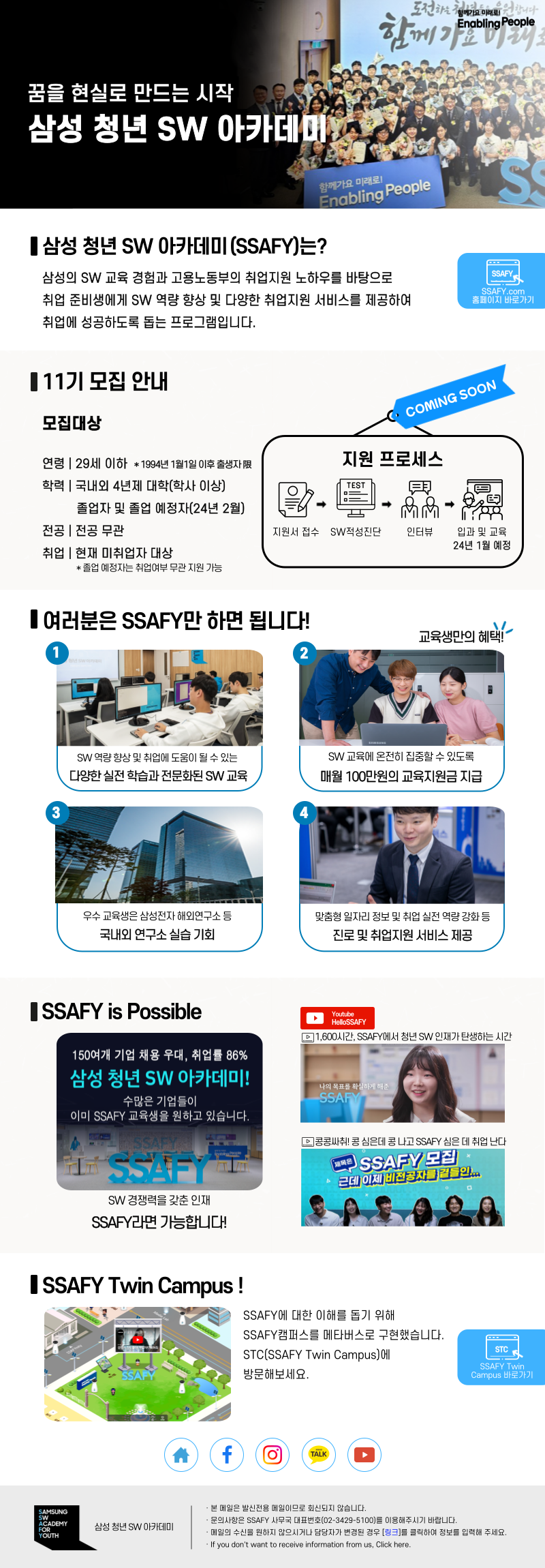 「삼성 청년 SW 아카데미」11기 교육생 모집! Coming Soon!