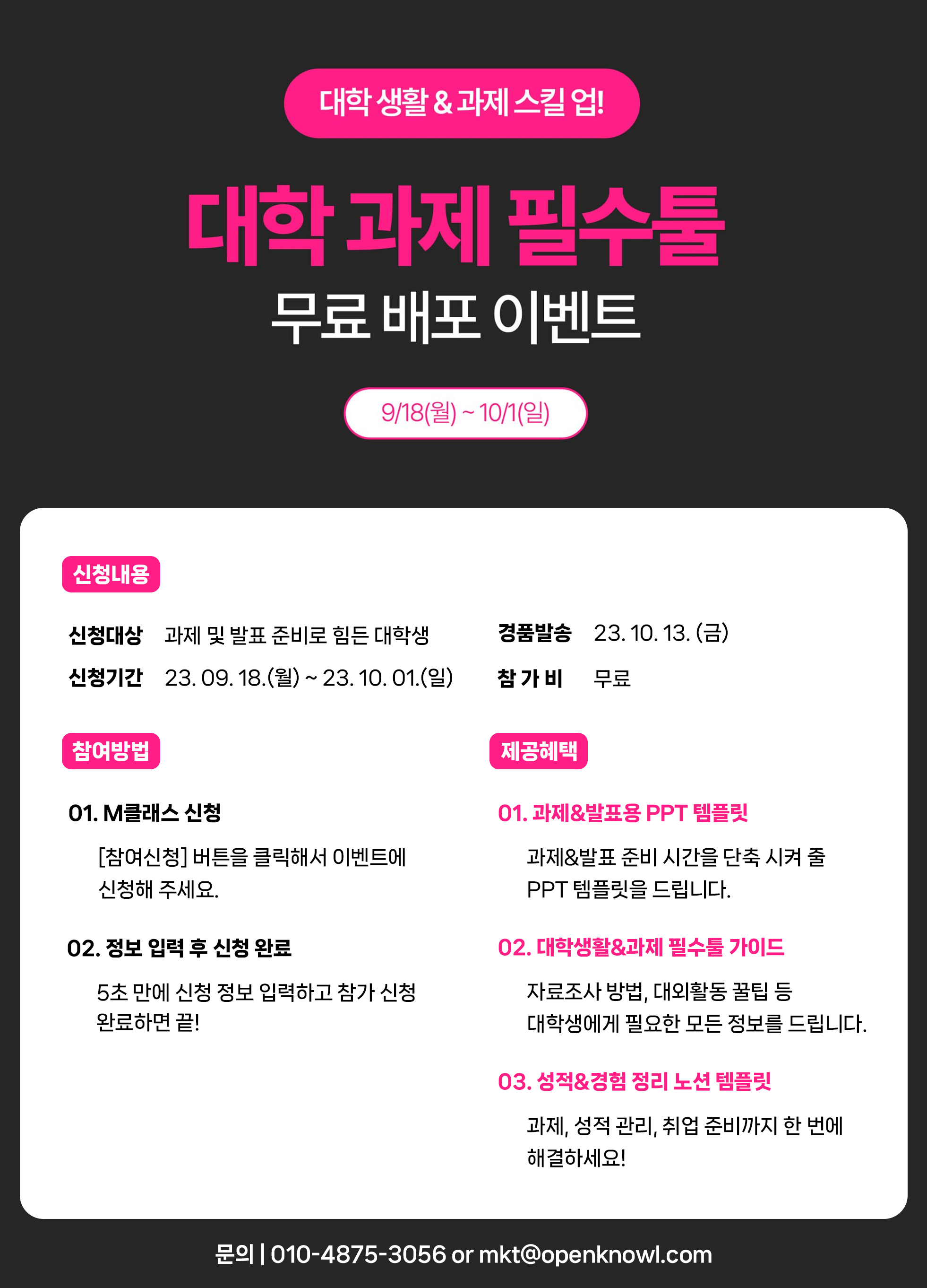 1. 프로그램명 : 대학 과제 필수툴 무료 배포 이벤트