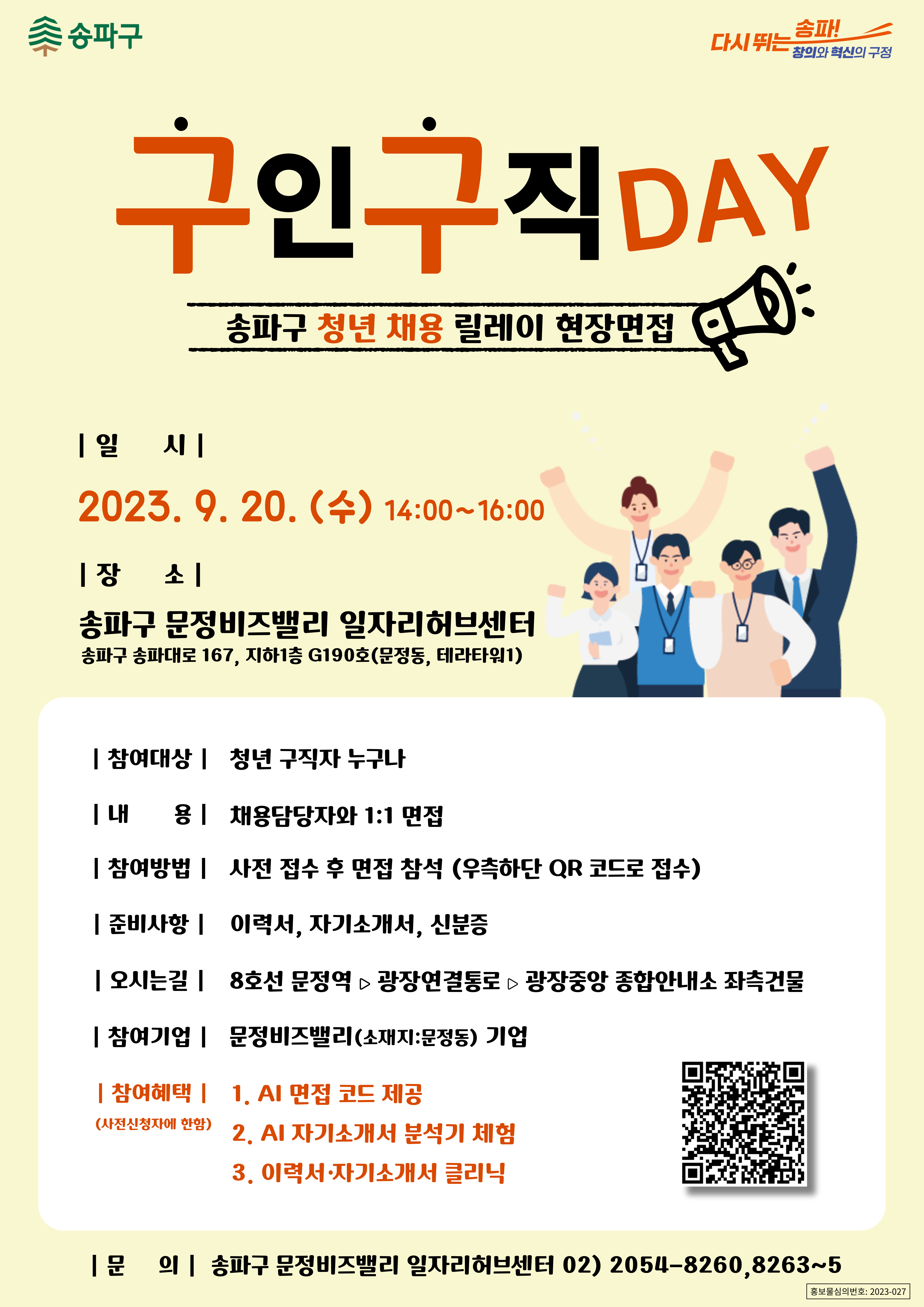 □ 문 의 처:문정비즈밸리일자리허브센터(02-2054-8265)