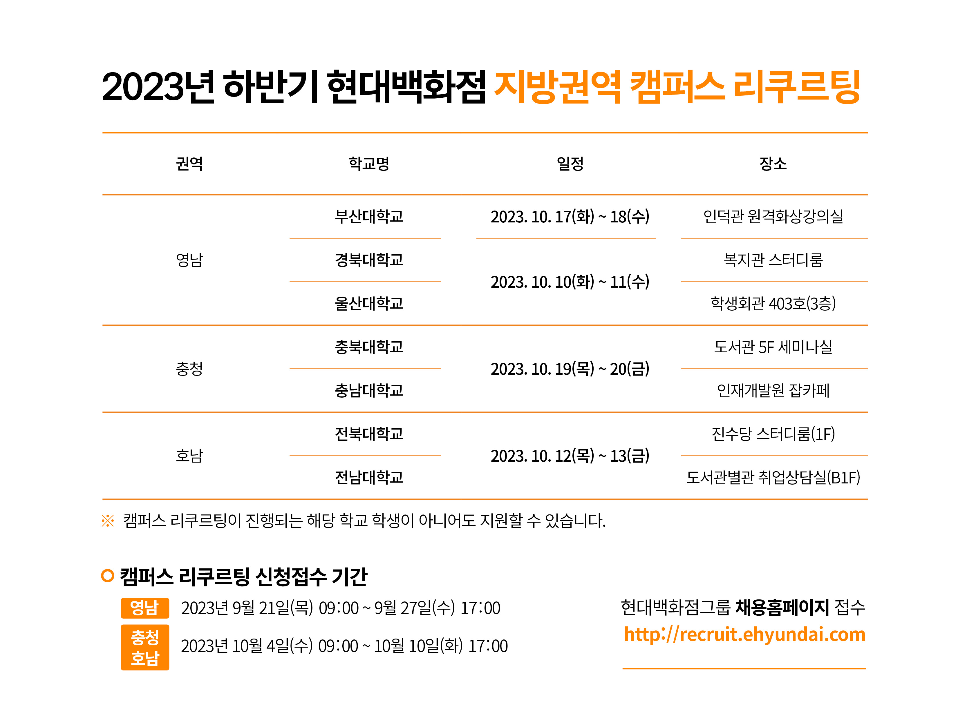 [현대백화점] 부산대학교 현장면접(캠퍼스 리크루팅) 실시 안내