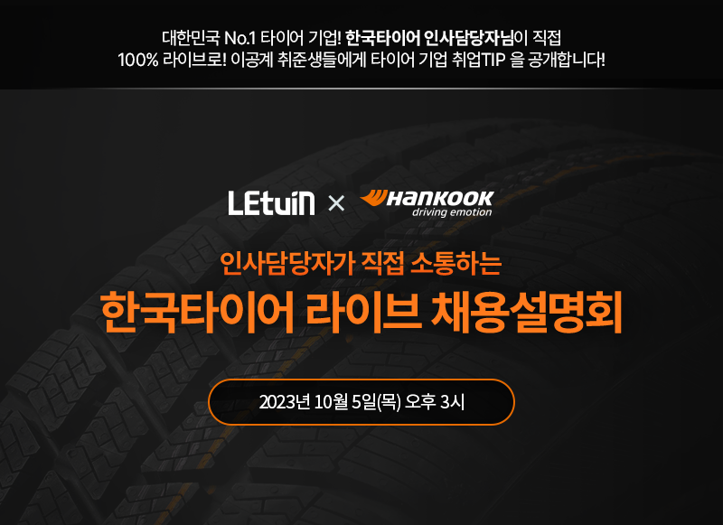 * 홍보물: 첨부파일 (파일명 : (렛유인에듀) 2023 하반기 한국타이어 채용설명회 홍보물.zip)