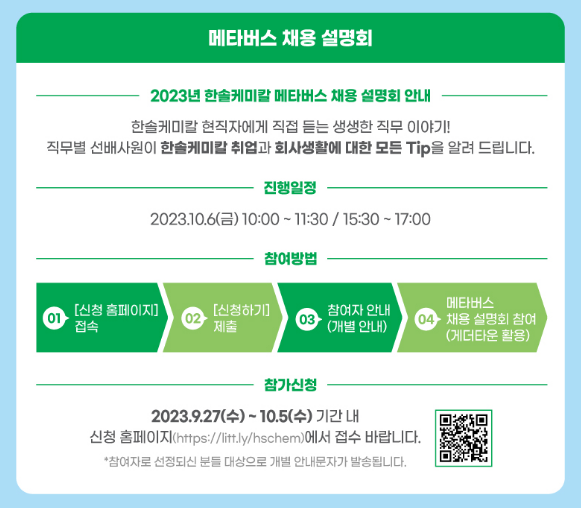 [한솔케미칼] 2023 메타버스 채용 설명회 안내 (~10/15)