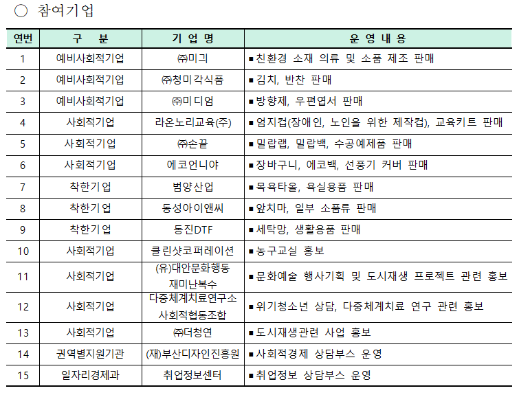 ▷ 지역특화상품 등 관내 사회적경제기업 제품 판매 및 홍보