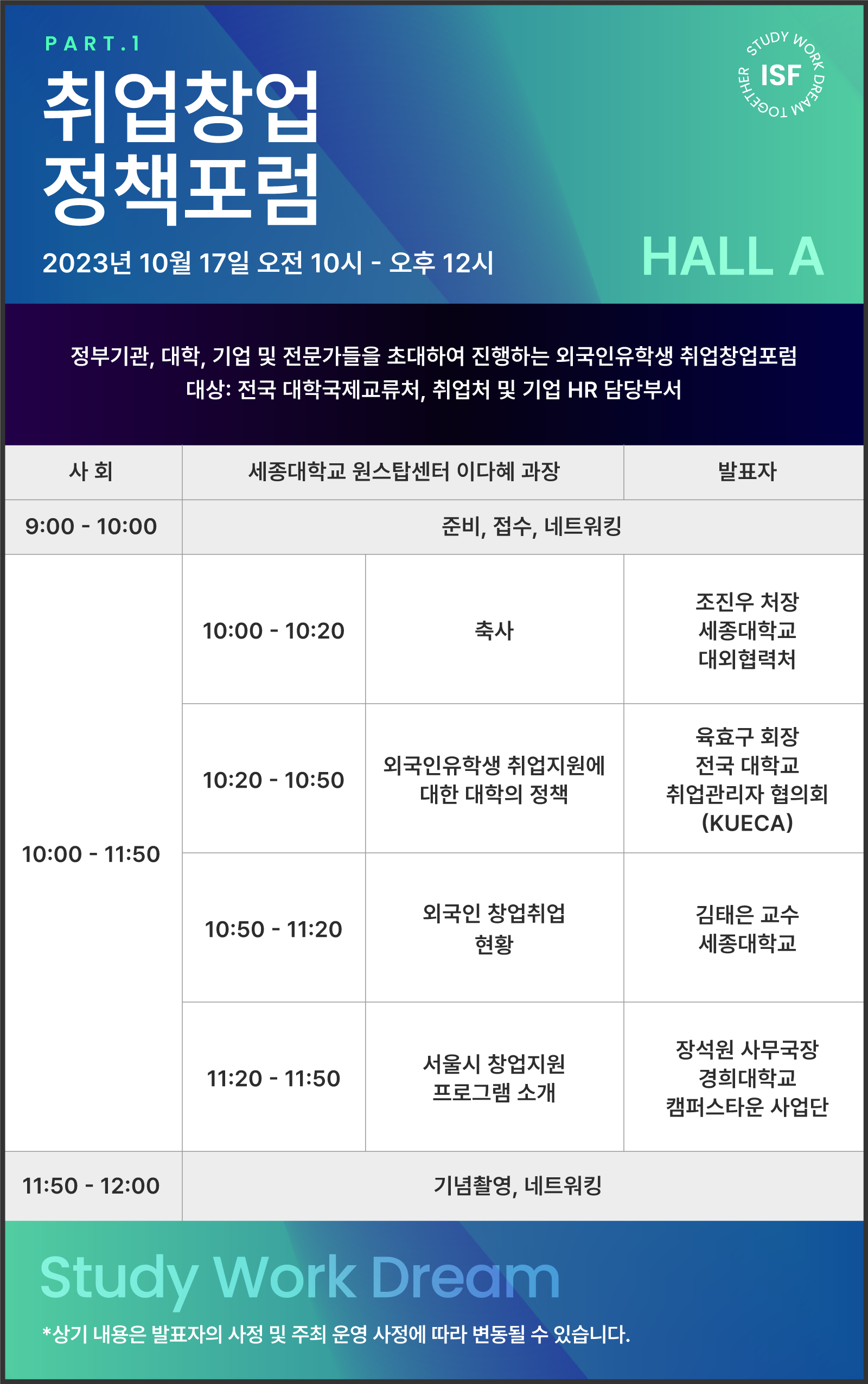 ISF FALL 2023 제2회 외국인유학생 취업 창업 박람회