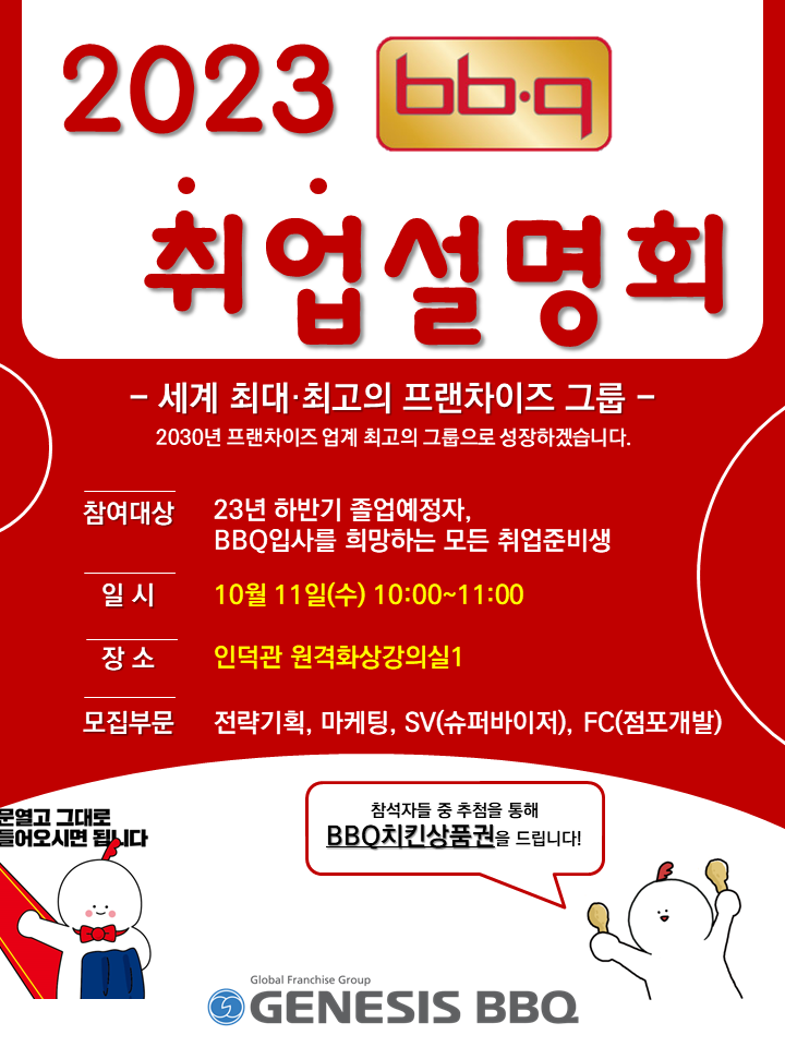 [제너시스비비큐] 채용설명회 안내(10/11)