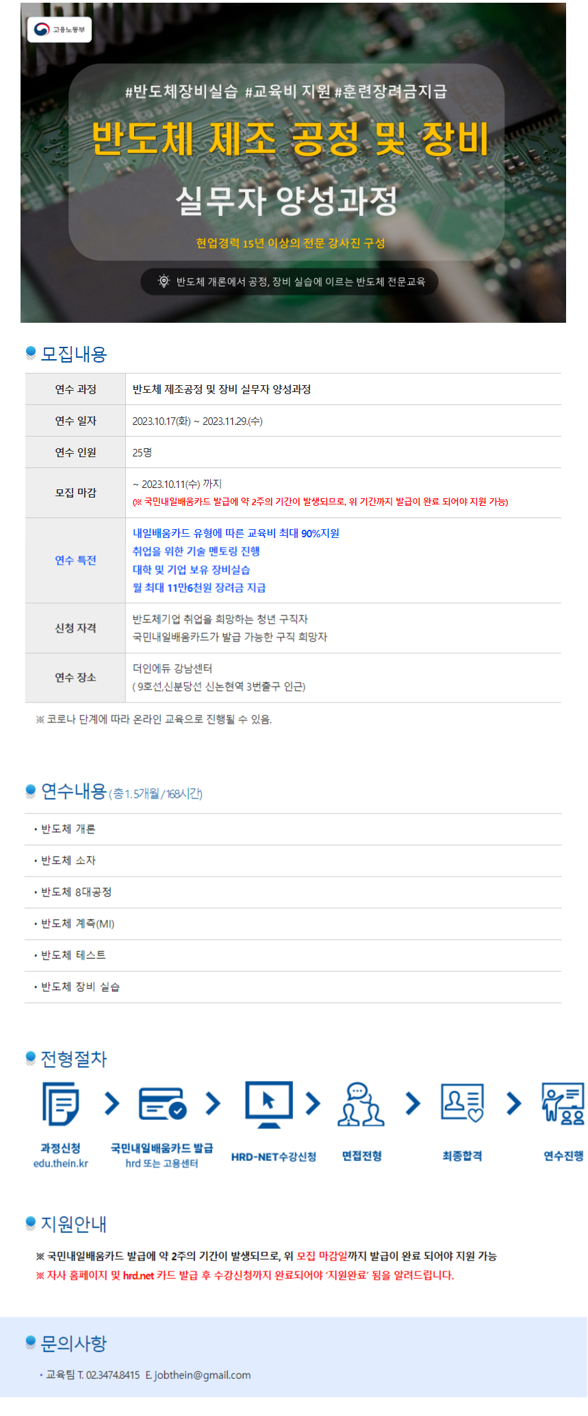 [고용노동부 교육비+훈련 장려금 지원] 반도체 제조공정 및 장비실무자 과정안내