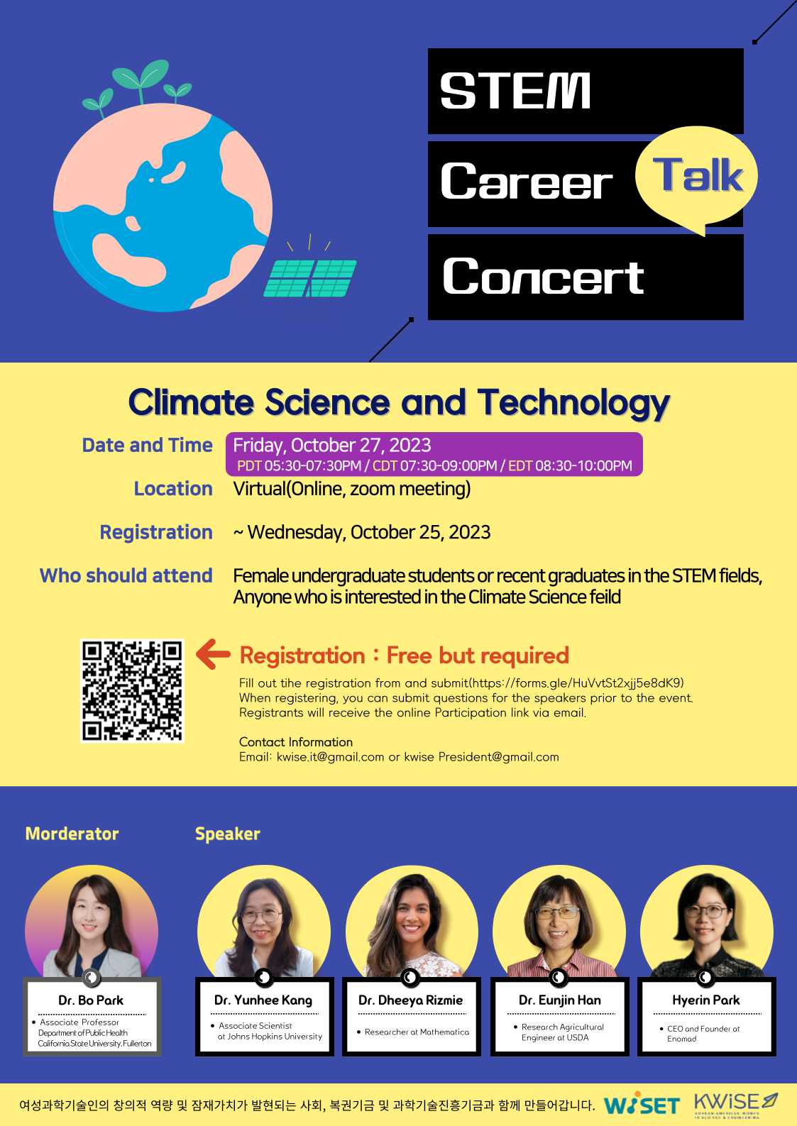 ◆ 주요 연사 : 강윤희 박사(존스홉킨스), Dheeya Rizmie 박사(매스매티카), 한은진 박사(미국농무부), 박혜린 대표(Enomad), 박보영 박사(캘리포니아주립대학교,풀러턴)