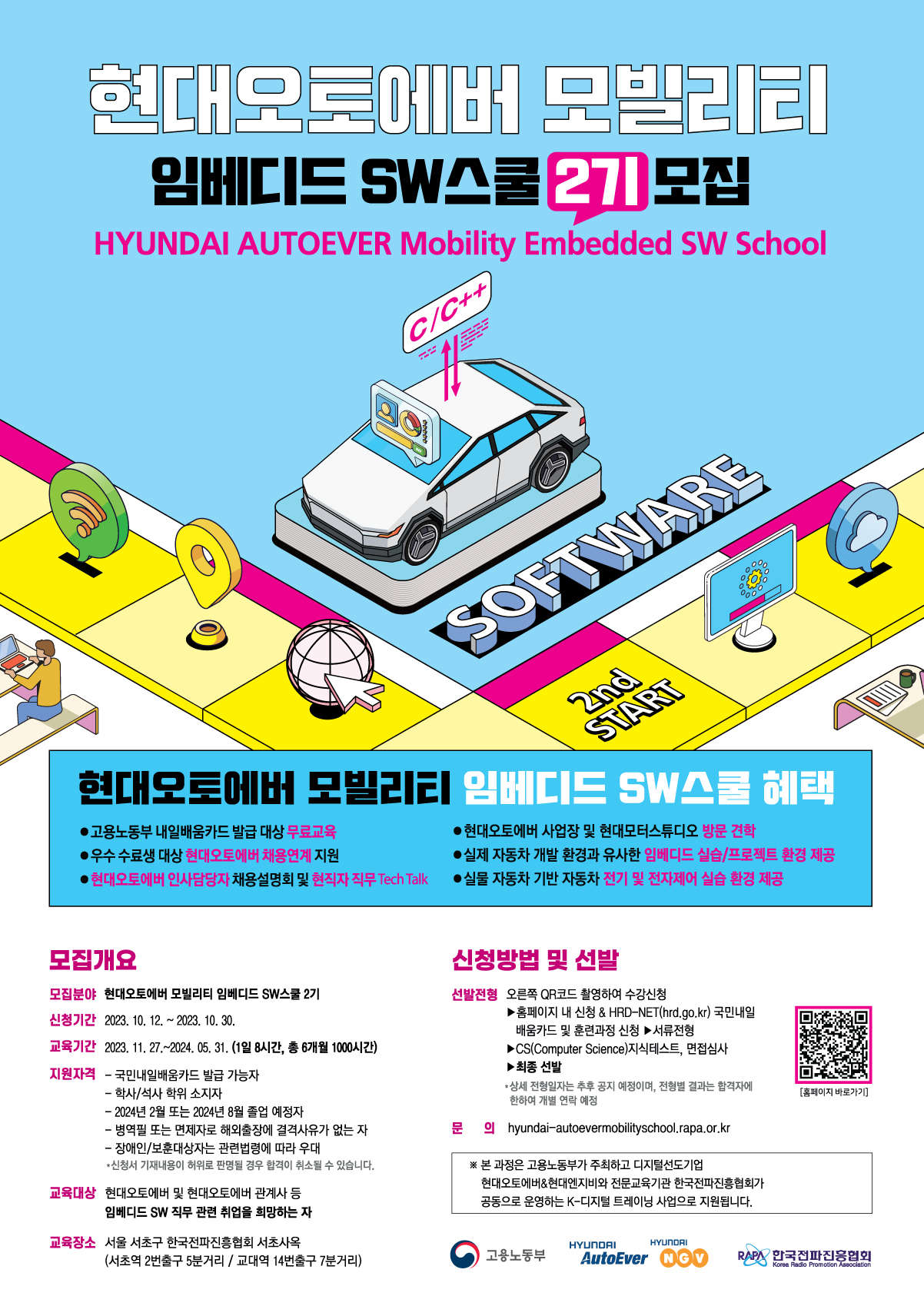 컴퓨터/SW공학, 전자공학, 기계공학 등 모빌리티 임베디드 SW분야 커리어를 희망하시는 전공 학생분들의 많은 참여 바랍니다.