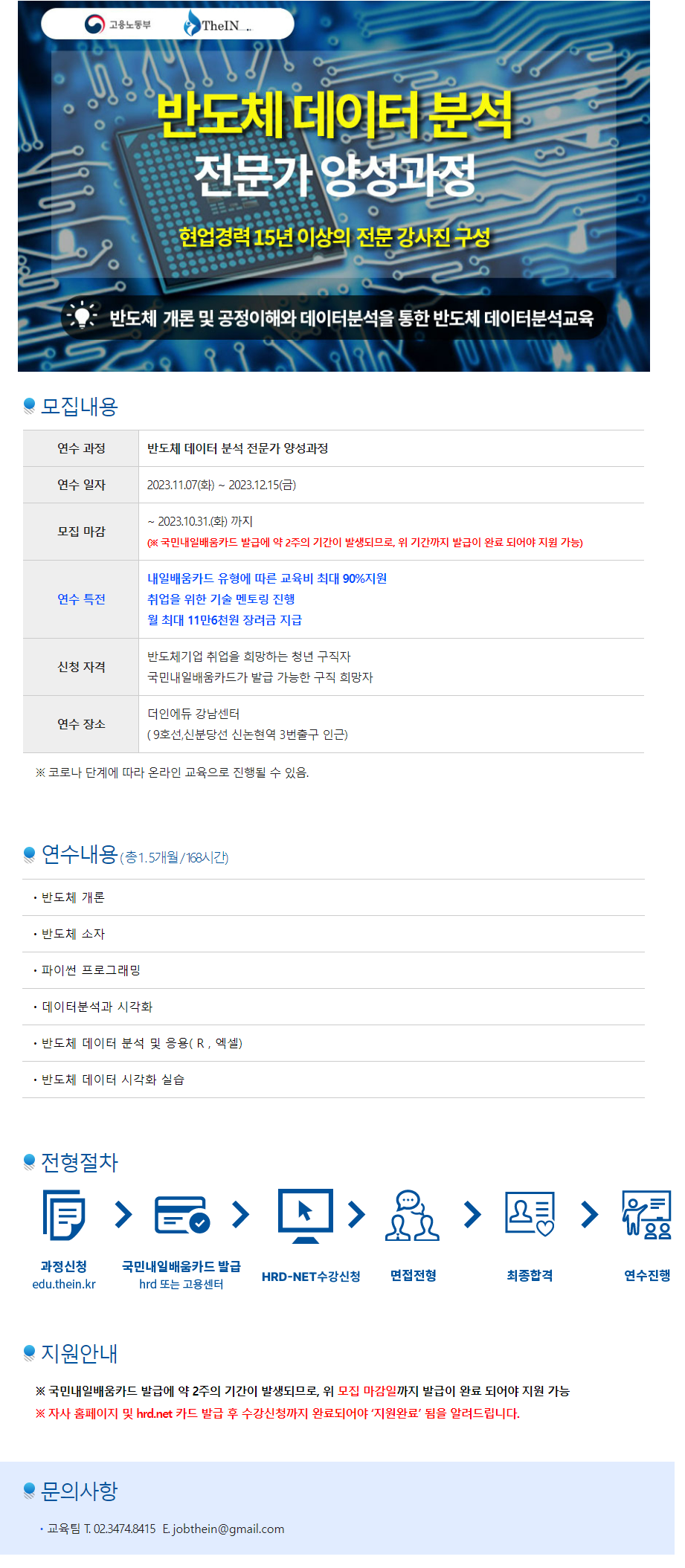 [ 고용노동부 교육비+훈련 장려금 지원 ] 반도체 데이터 분석 전문가 과정 안내