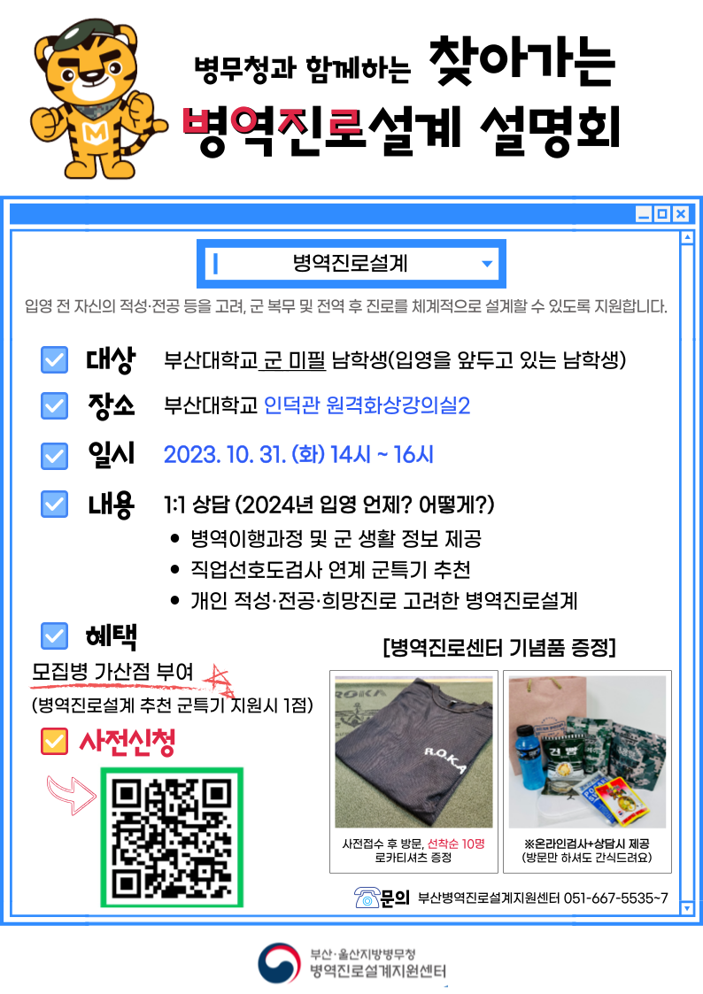 [병무청] 찾아가는 병역진로설계 안내(10/31)