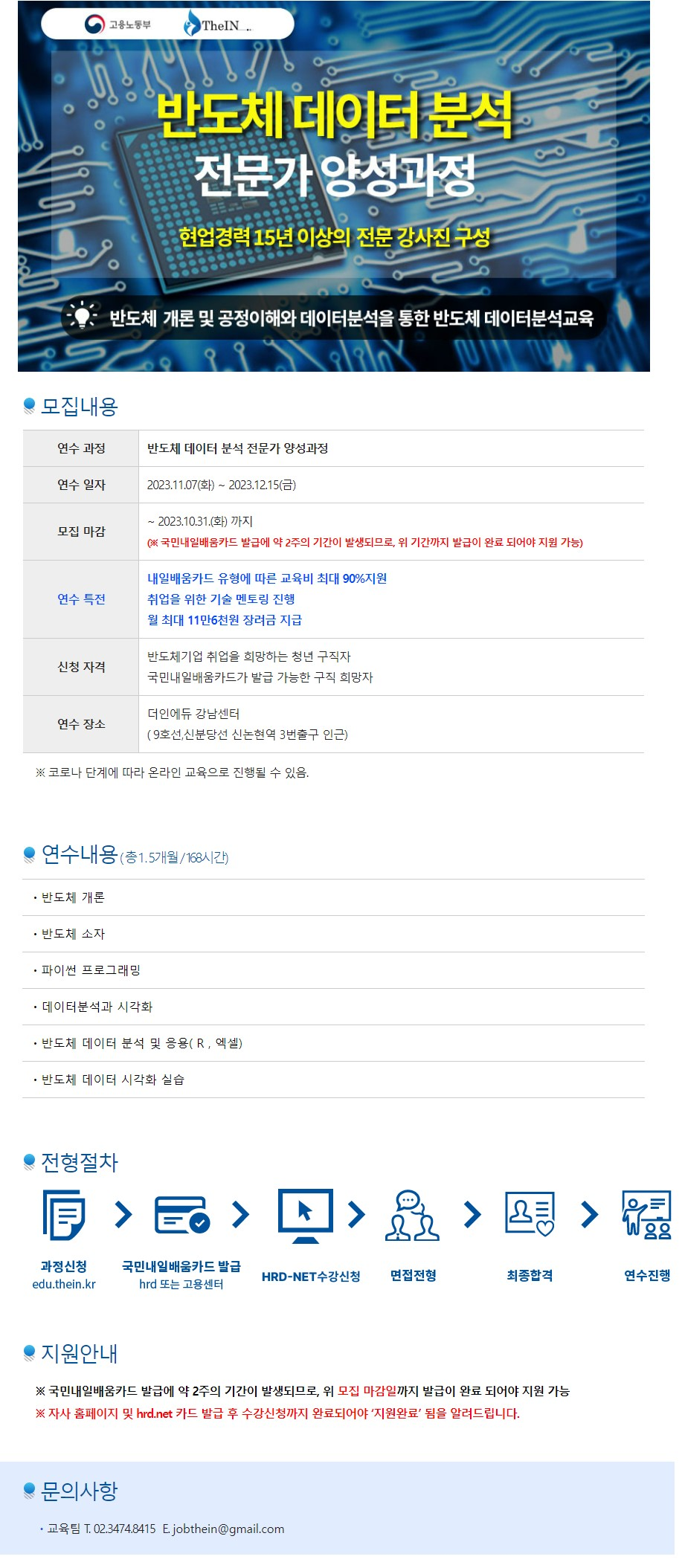 [ 고용노동부 교육비+훈련 장려금 지원 ] 반도체 데이터 분석 전문가 과정 안내