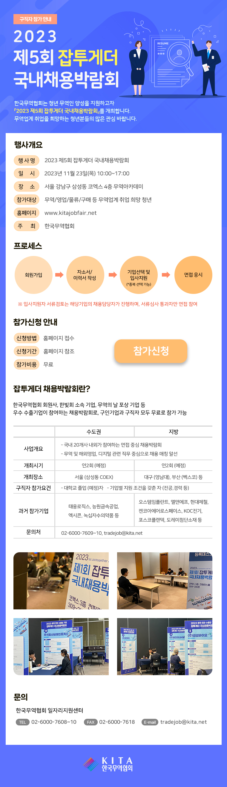 ㅇ 신청방법 : 한국무역협회 채용박람회 사이트(www.kitajobfair.net/trade23_5) 온라인 신청