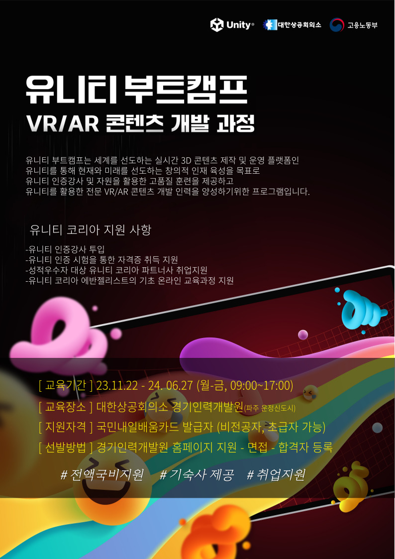 해당 과정 수료시 유니티코리아 파트너사 취업 지원합니다.