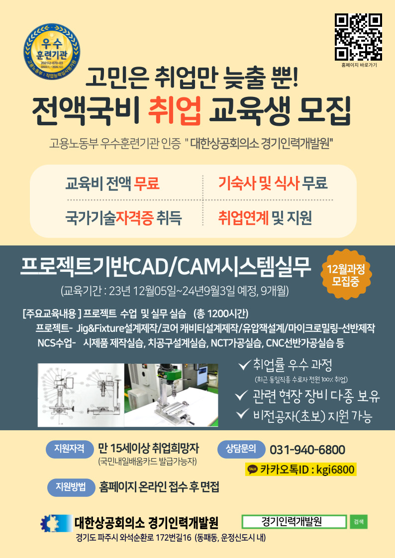 아울러, 프로젝트 기반 CAD/CAM 시스템 실무 과정도 모집하고 있으니 관심있는 분들의 많은 지원바랍니다.