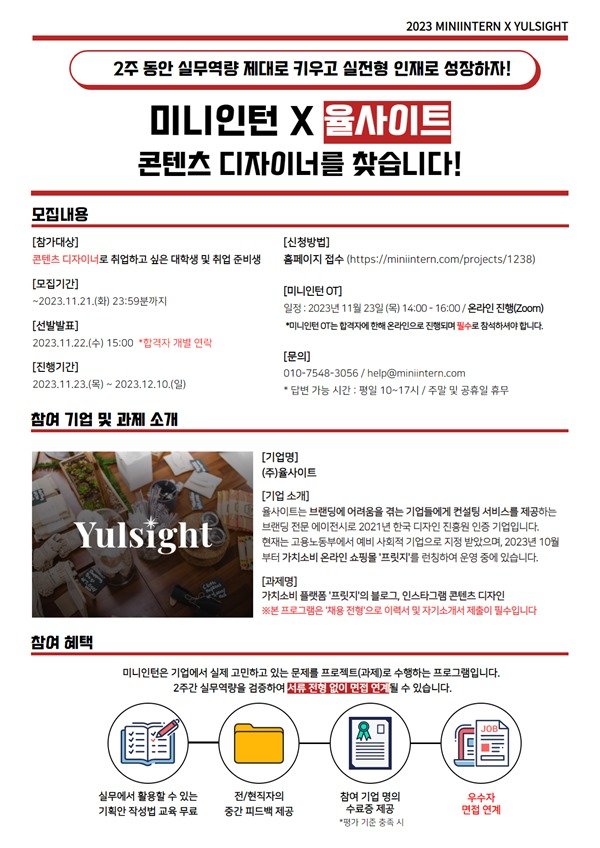 [미니인턴X율사이트] 브랜딩 전문 기업 율사이트의 실무 과제 수행하고 취업까지 할 콘텐츠 디자이너 구합니다! (~11/21)