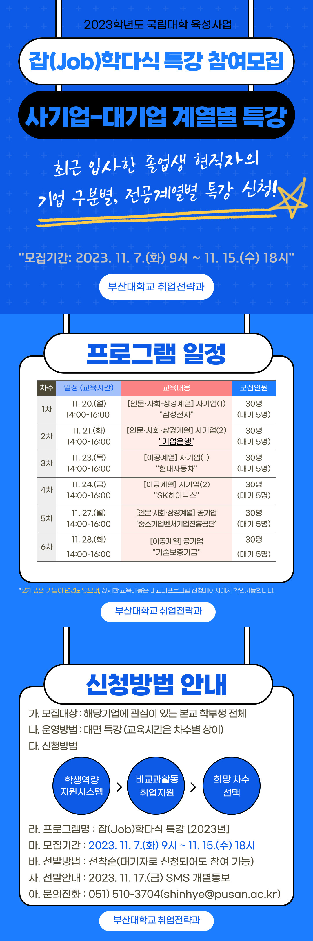 [국립대학육성사업] 2023학년도 잡(job)학다식 특강 운영 안내