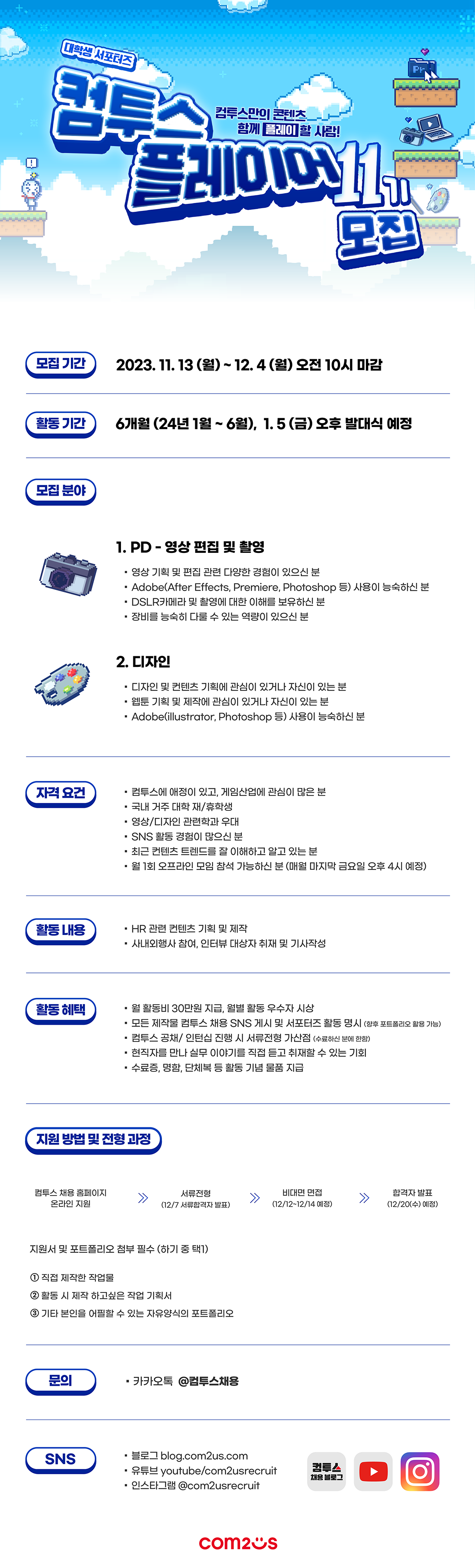 대학생 서포터즈 컴투스 플레이어 11기 모집