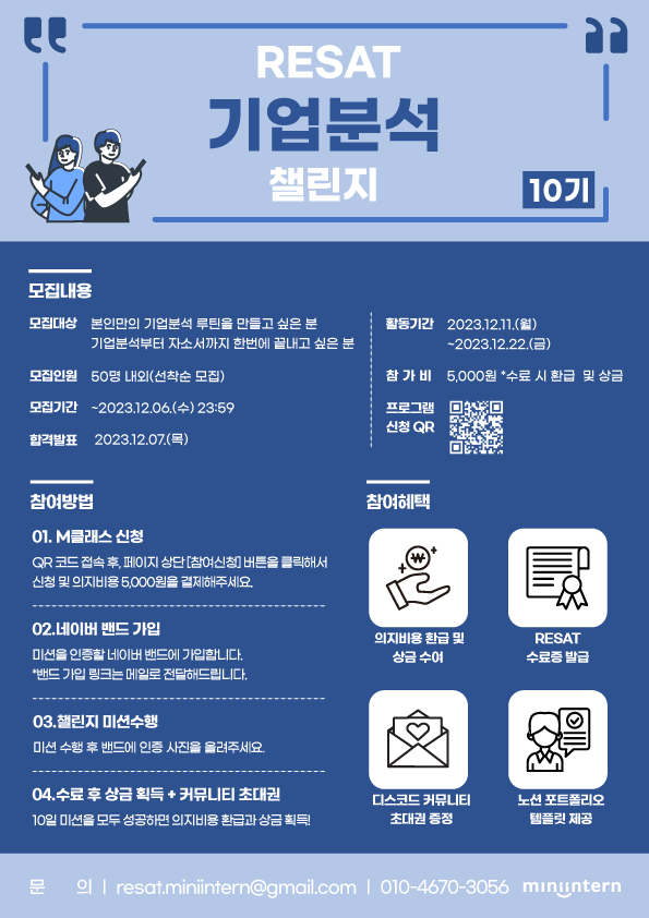 지금 바로 <RESAT 기업분석 챌린지 10기>에 도전하고