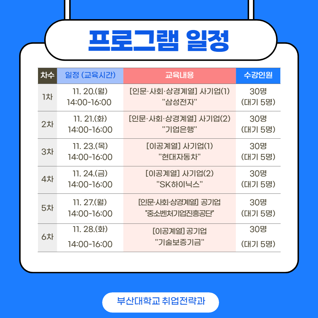 - 다양한 기업 및 직무군을 구성하여 수요자 선택의 기회를 확장하고, 재학생의 진로 탐색 활동 지원