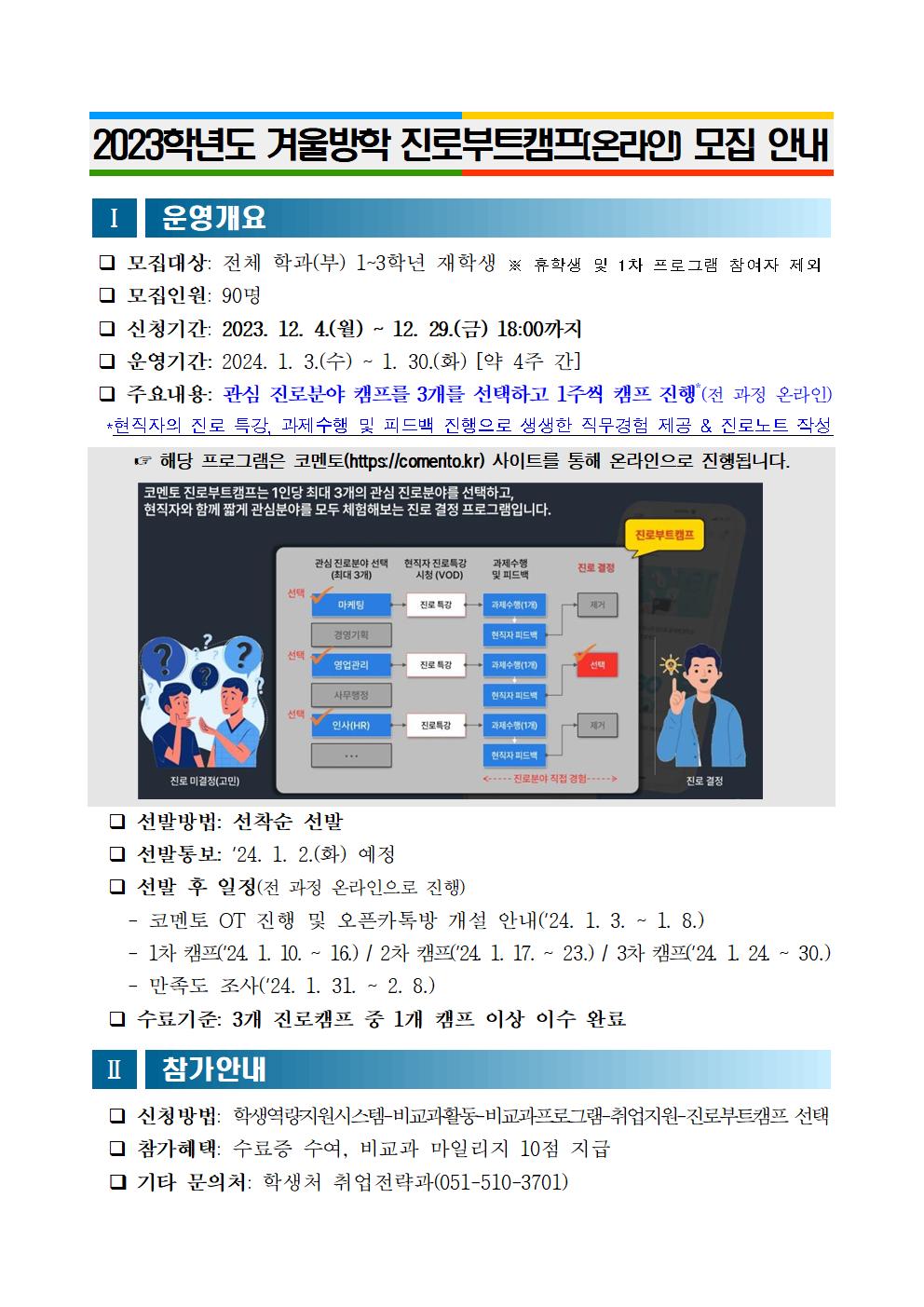[취업전략과] 2023년 겨울방학 진로부트캠프(온라인) 참여자 모집