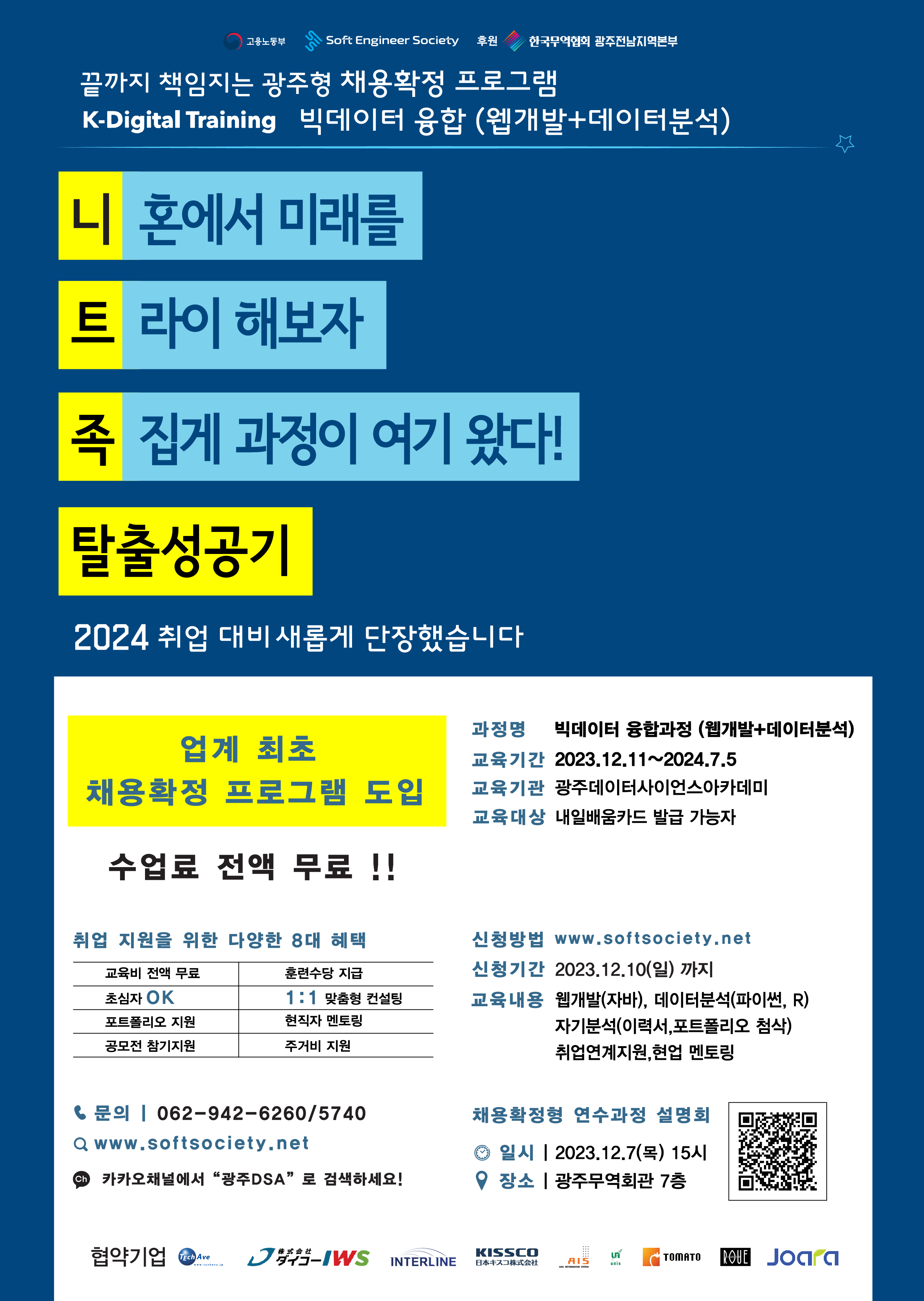- 교육기간 : 2023.12.11 ~ 2024.7.5, (최종 등록가능 기간: 2023.12.22.(금)까지)