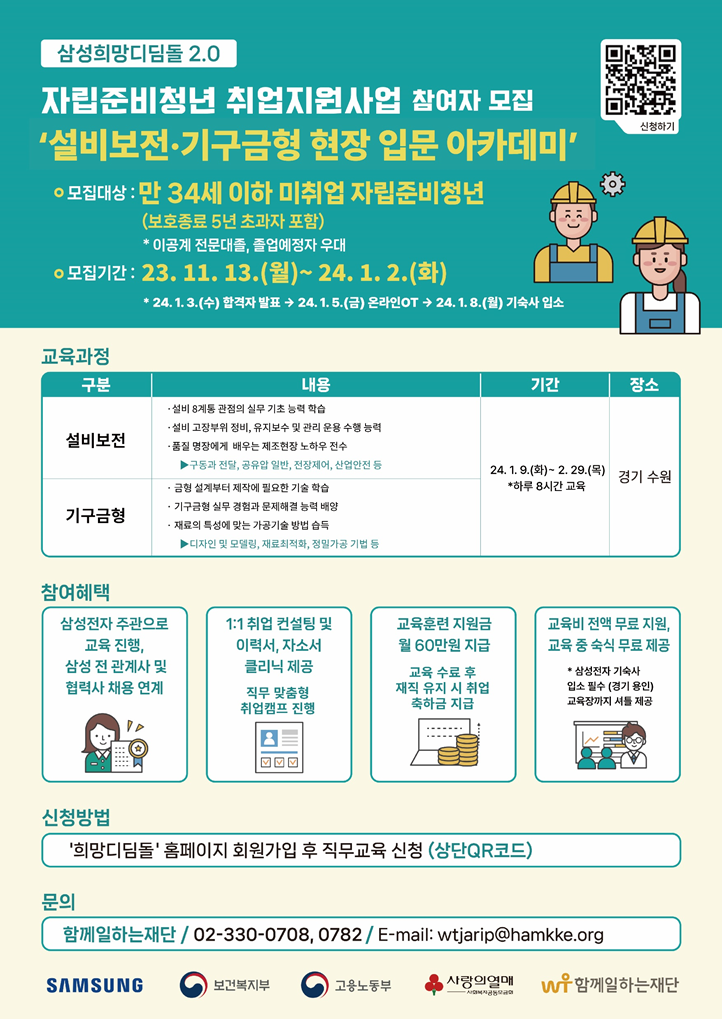- ‘희망디딤돌’ 홈페이지 회원가입 후 직무교육 신청(네이버 검색 or 포스터 QR코드)