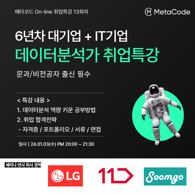 🚀(무료/비전공자) 6년차 데이터분석가의 취업특강 초대합니다🚀