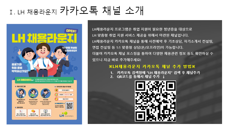 이용 방법: 카카오톡 검색창에 'LH채용라운지' 검색 후 채널 추가하여 이용