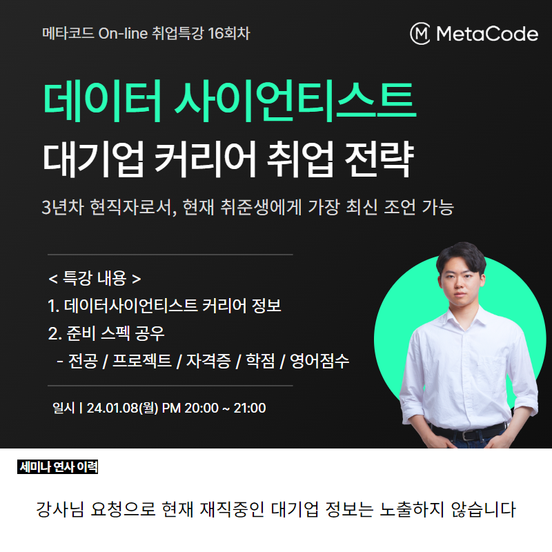 (무료/선착순 500명) 데이터 사이언티스트 커리어를 희망하시는 모든 분들을 초대합니다
