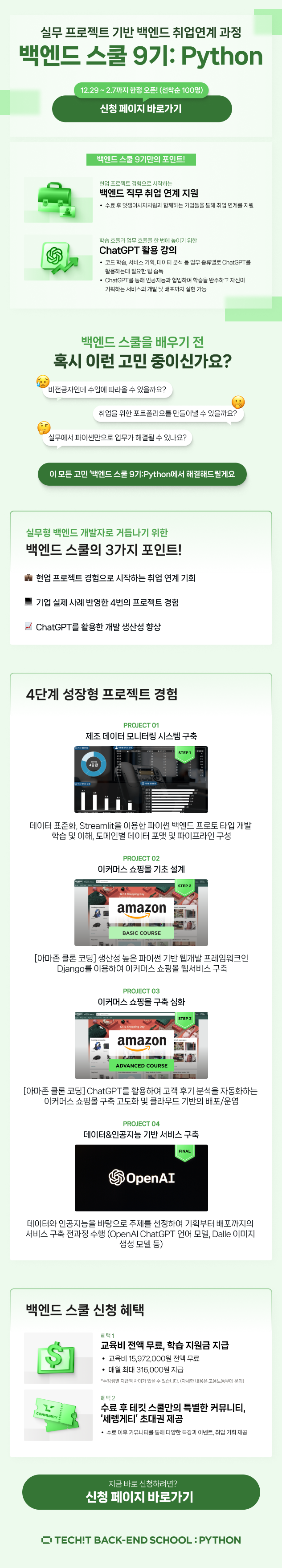 🔔교육개요- 자세한 내용 및 지원 : 백엔드 스쿨 7기: Java : TECHIT (클릭)