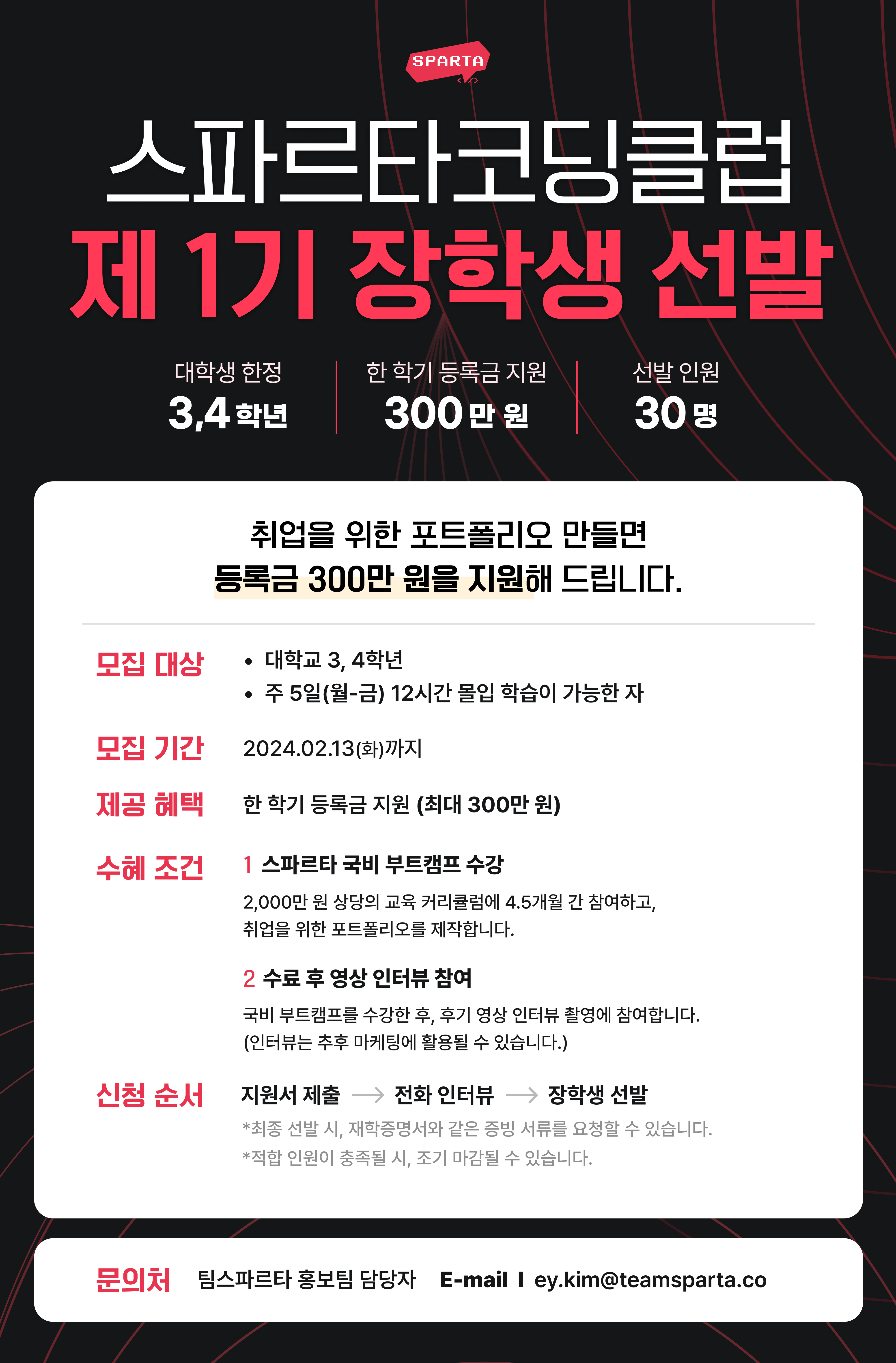 [팀스파르타] 스파르타코딩클럽 제 1기 장학생 선발 안내