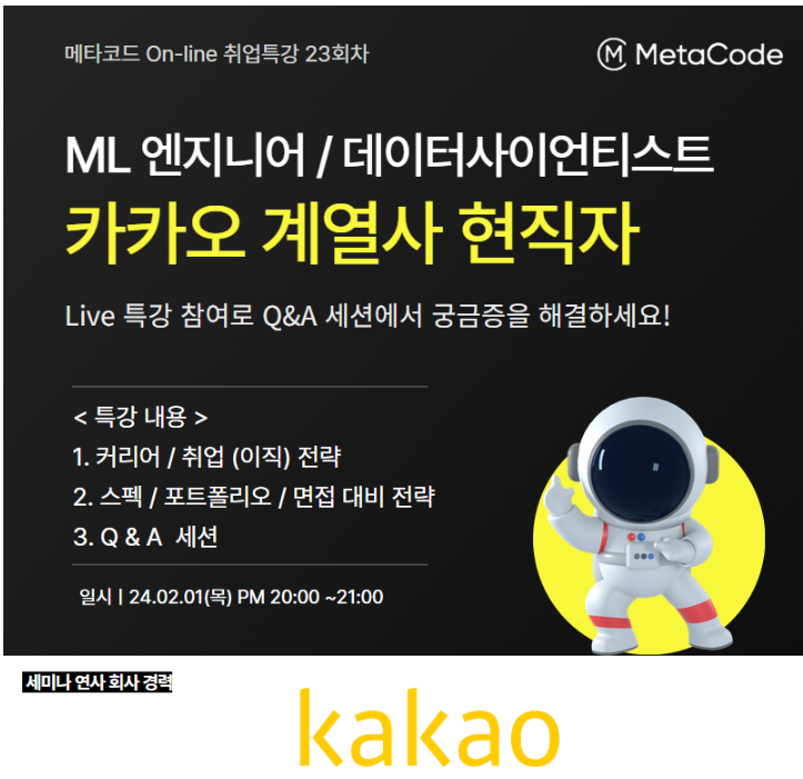 ML엔지니어/데이터 사이언티스 현직자 (취업/ 커리어) 특강