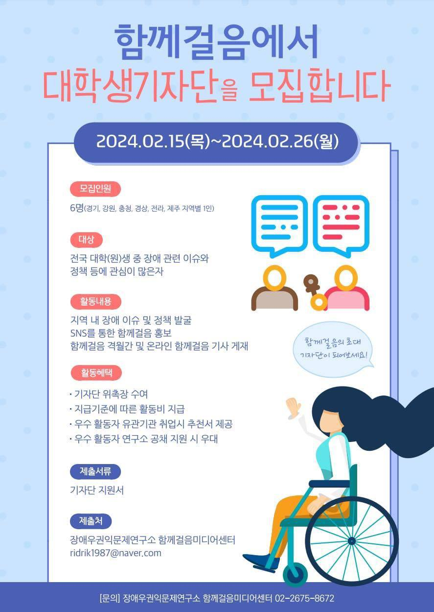 장애우권익문제연구소 대학생 기자단 모집 안내