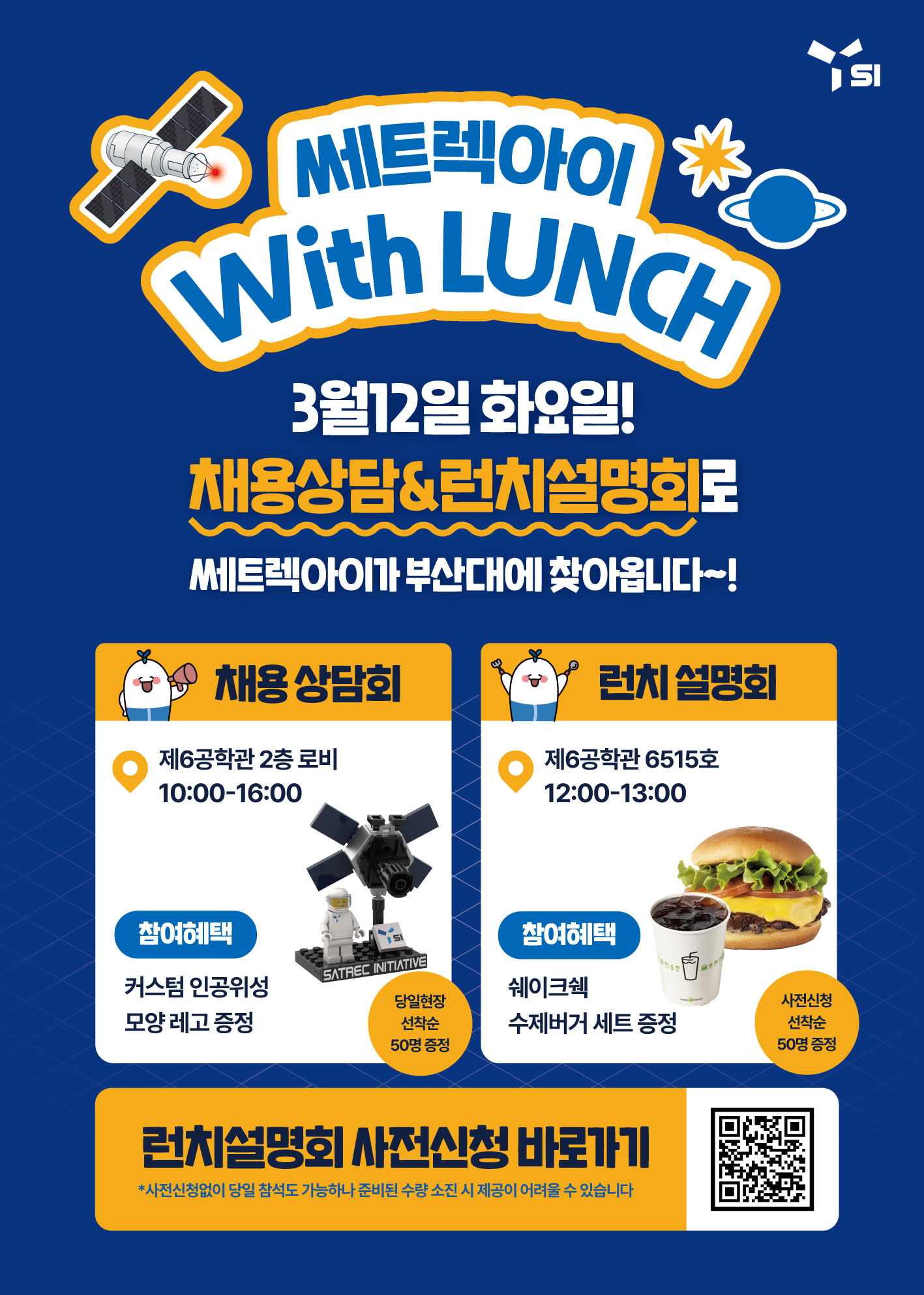 우주항공기업 쎄트렉아이 2024 상반기 채용설명회 및 상담회 일정을 아래와 같이 알려드리니, 관심 있는 학생들의 많은 참여 바랍니다.