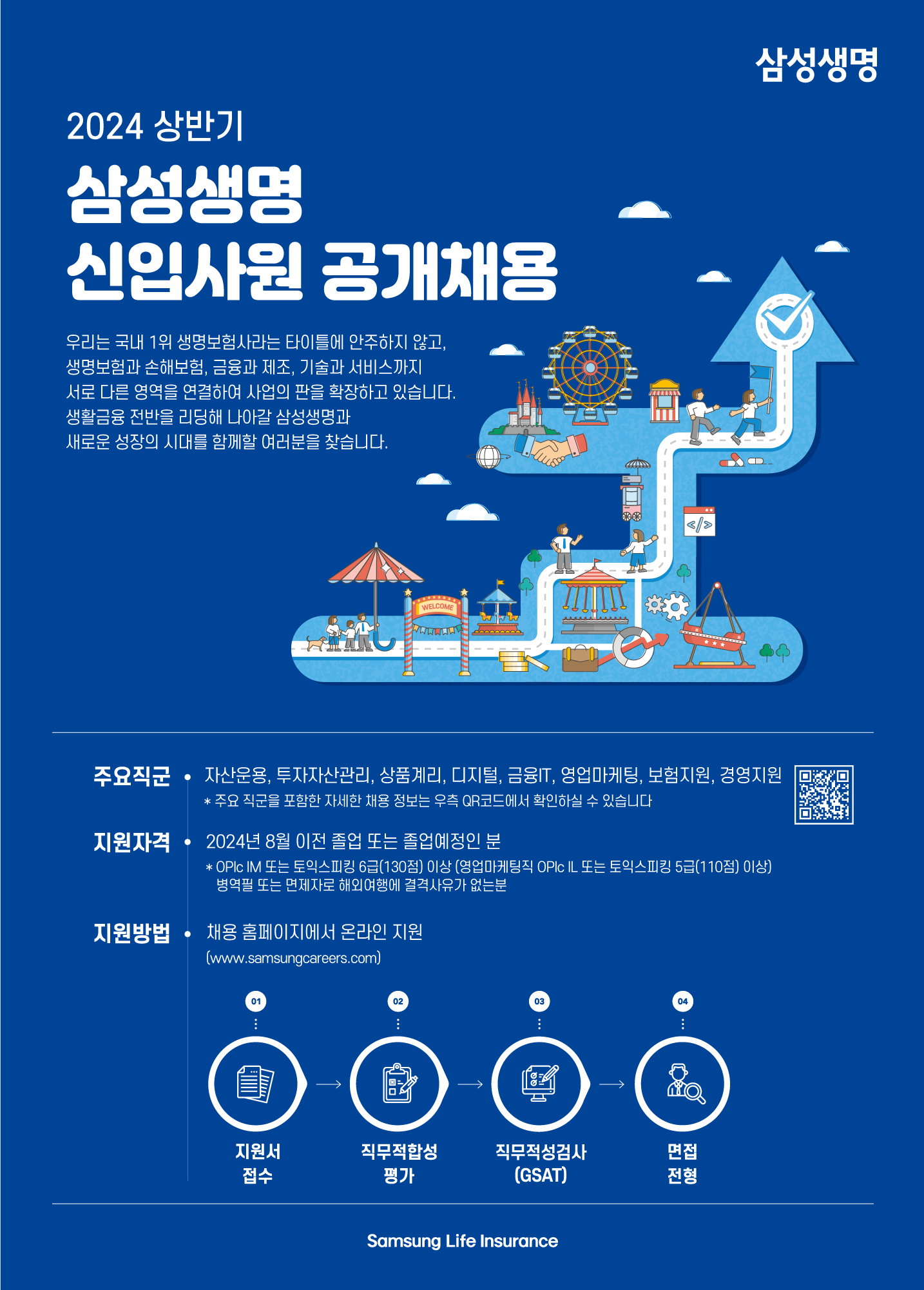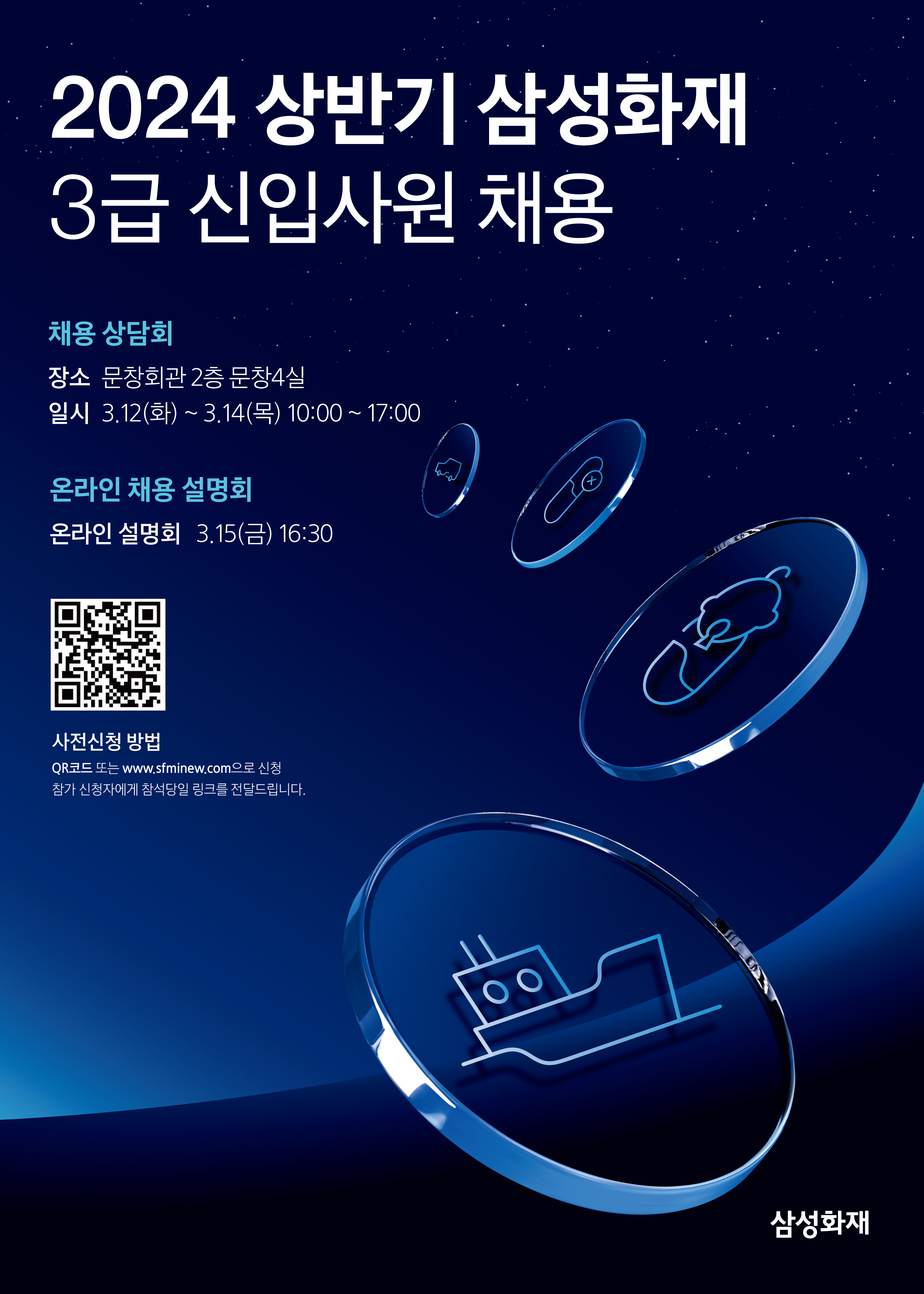 삼성생명 및 삼성화재 2024 상반기 채용상담회 일정을 아래와 같이 알려드리니, 관심 있는 학생들의 많은 참여 바랍니다.
