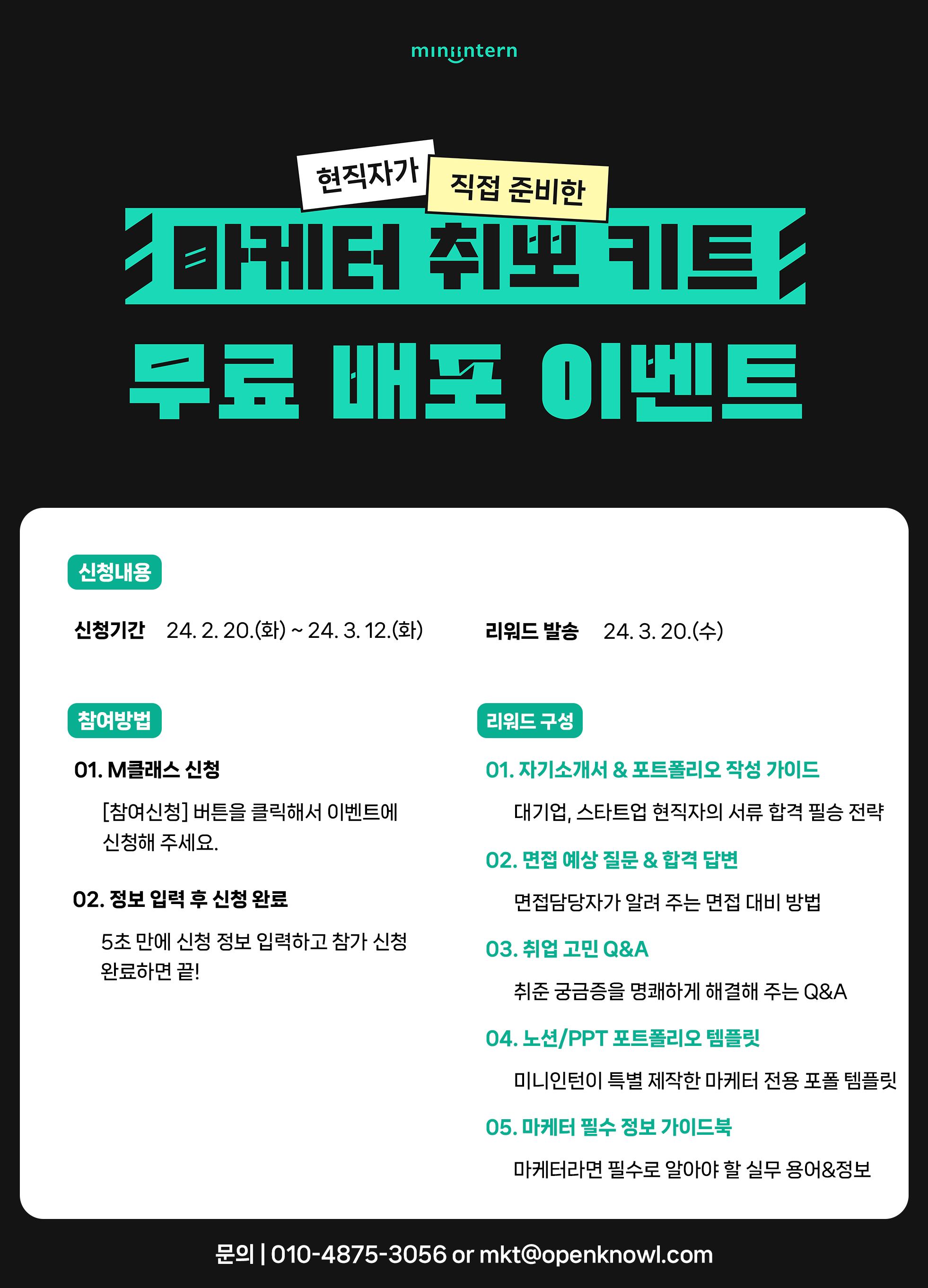 1. 프로그램명 : 마케터 취뽀 키트 무료 배포 이벤트
