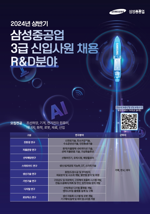 삼성중공업 2024 상반기 채용설명회 및 상담회 일정을 아래와 같이 알려드리니, 관심 있는 학생들의 많은 참여 바랍니다.