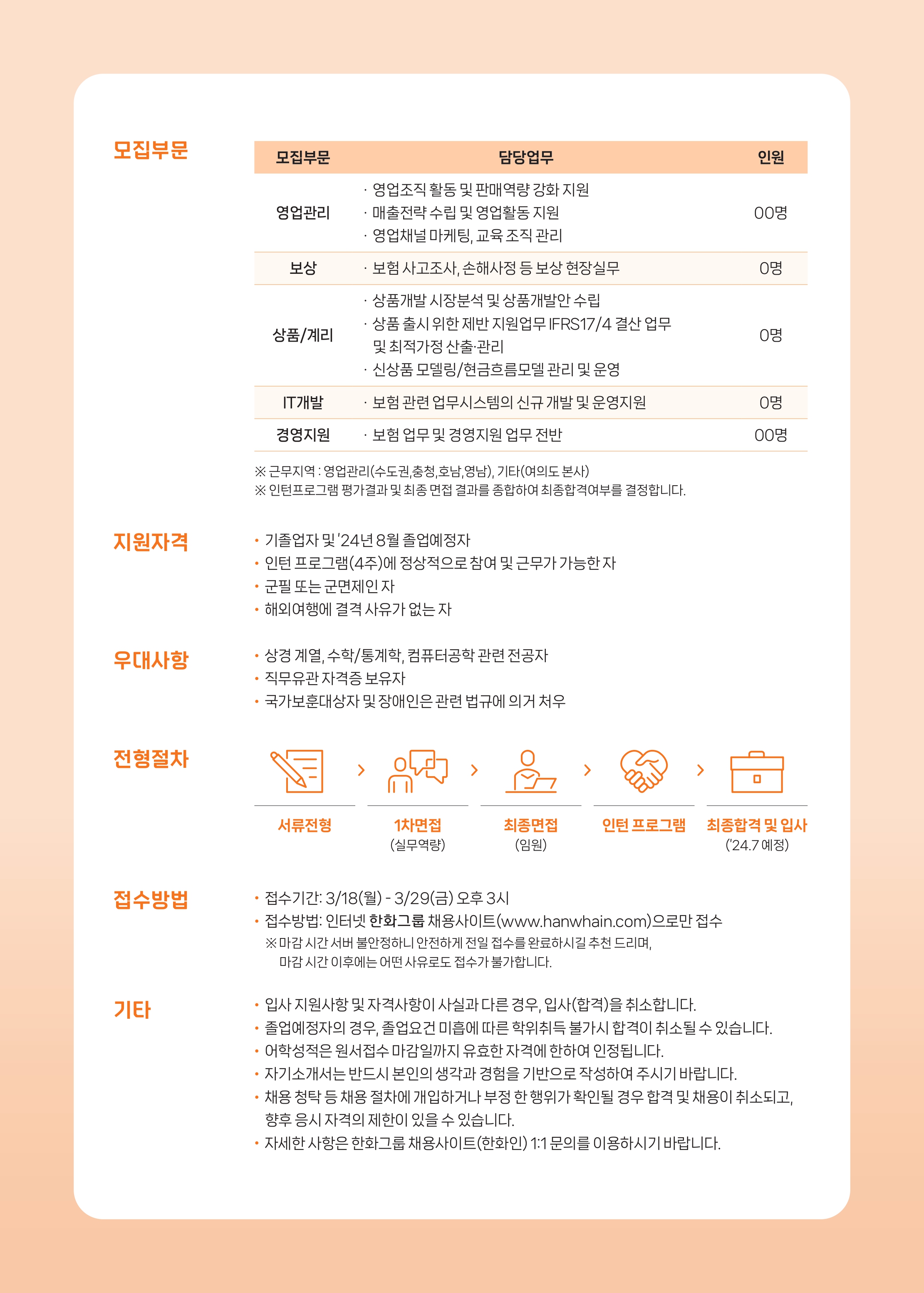 ※ 모집 부문 : 영업관리, 보상, 상품/계리, IT개발, 경영지원