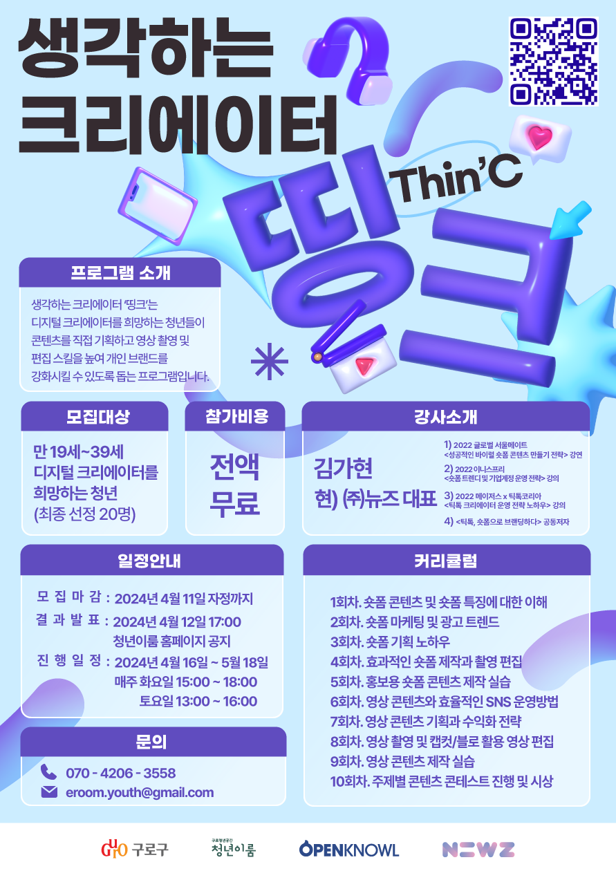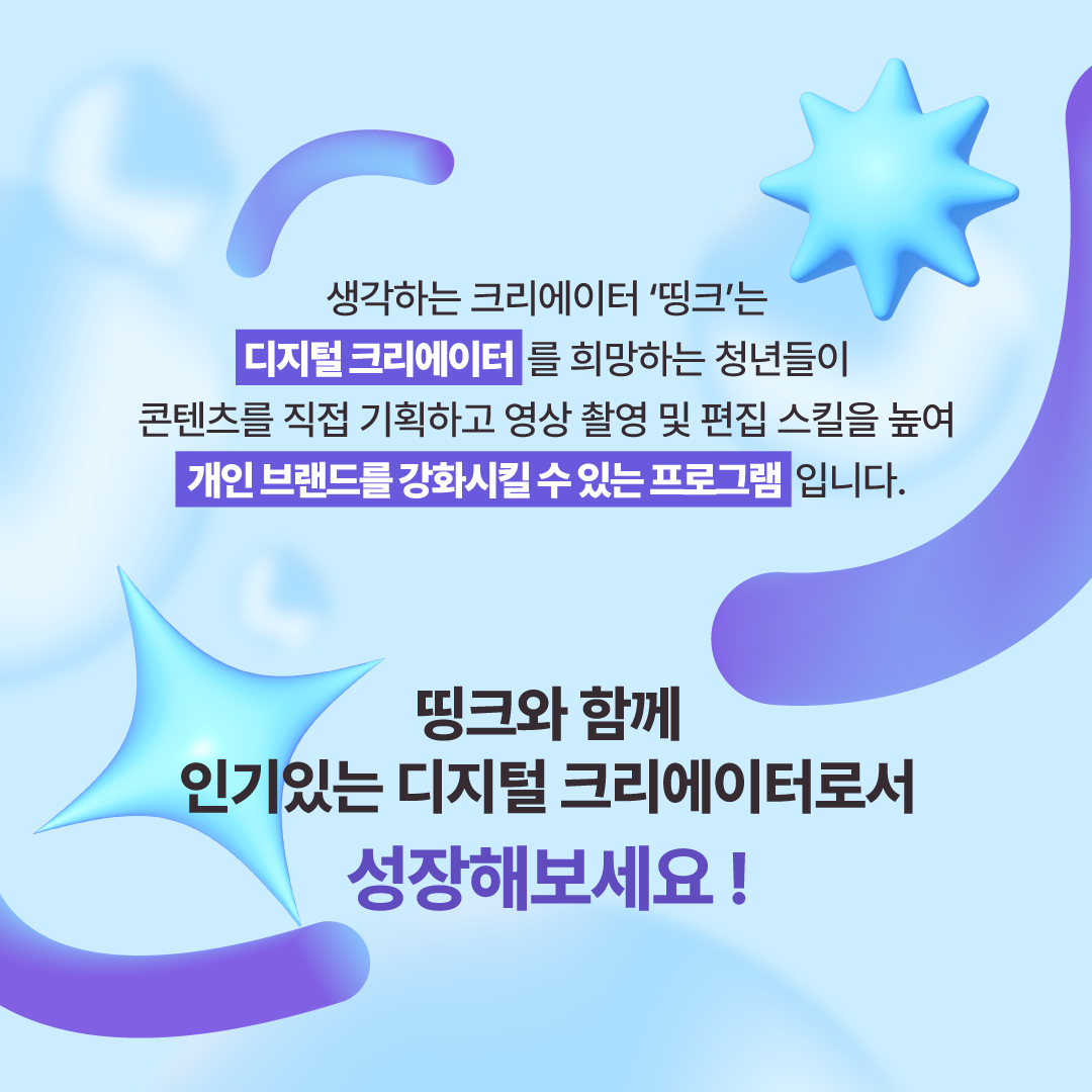 [생각하는 크리에이터, 띵크] 디지털 크리에이터 희망 청년 모집(~4/11)