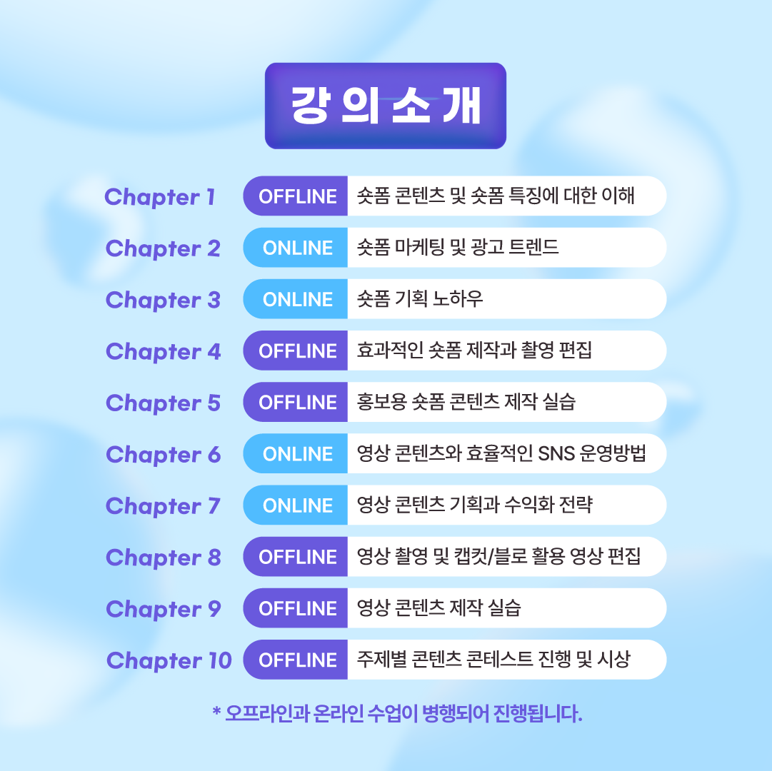 * 온/오프라인이 병행되며 자세한 일정은 신청페이지 참고 바랍니다.