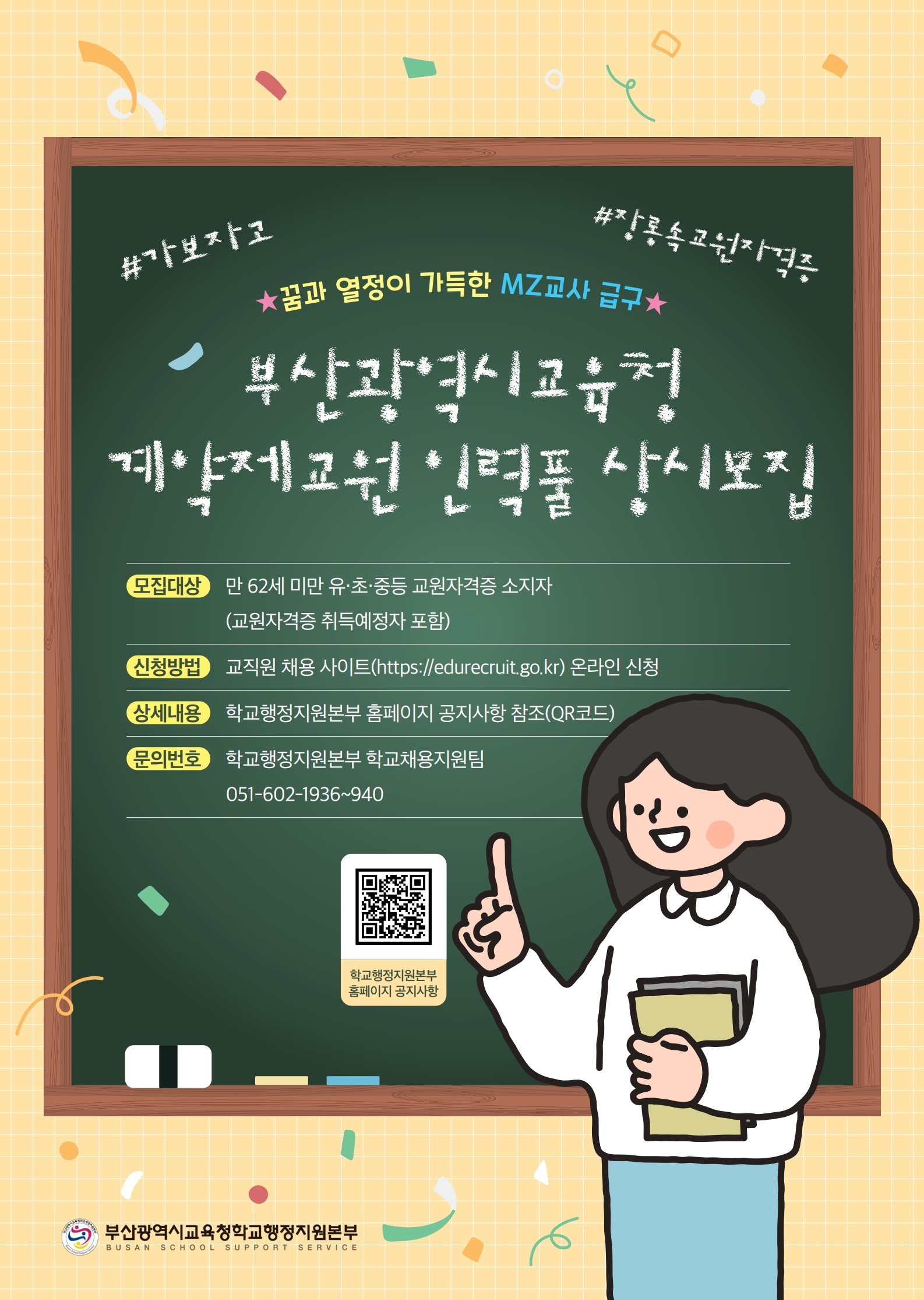- 문의처: 부산광역시교육청학교행정지원본부 학교채용지원팀