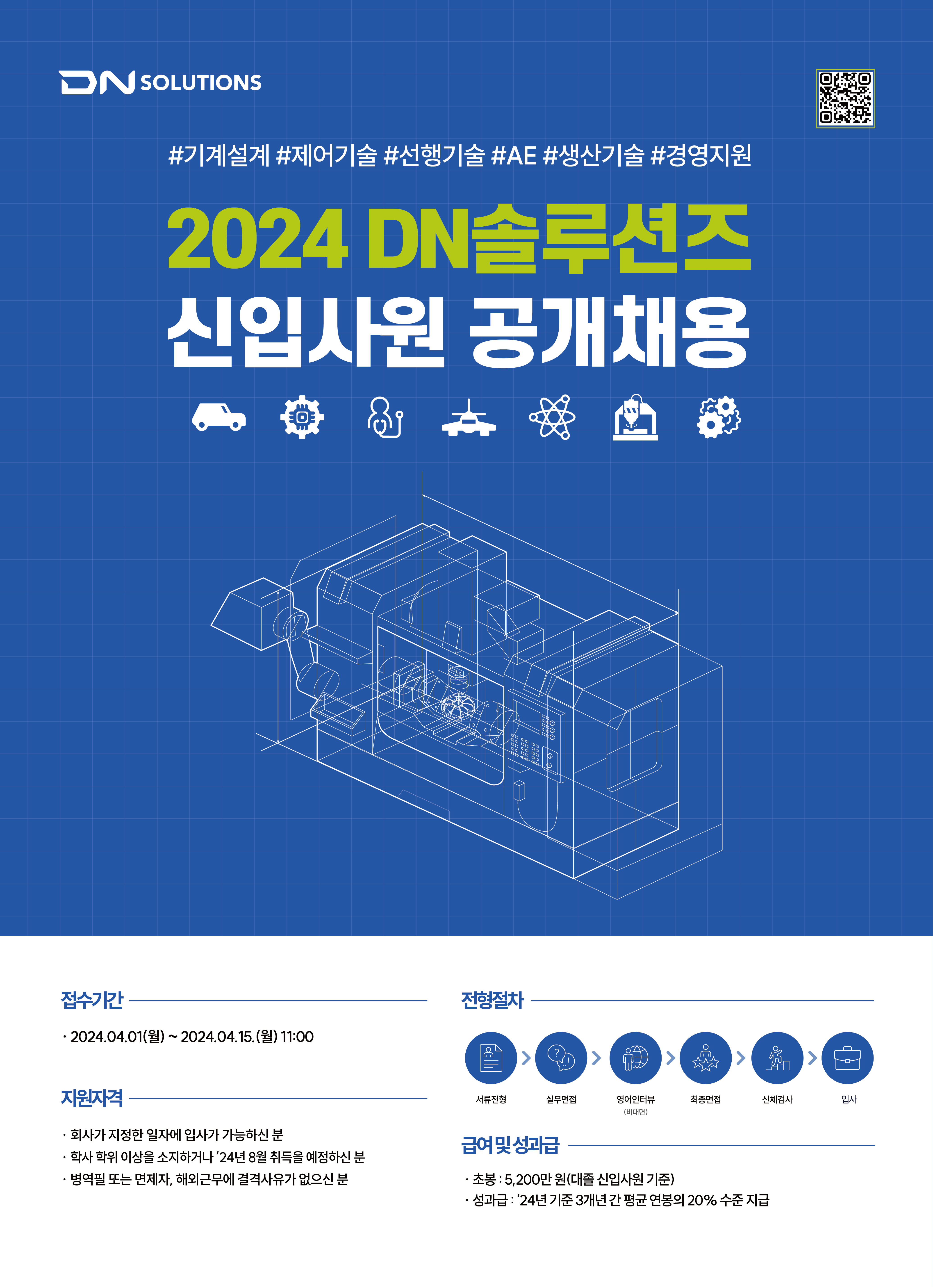 DN솔루션즈 2024 상반기 채용설명회 및 상담회 일정을 아래와 같이 알려드리니, 관심 있는 학생들의 많은 참여 바랍니다.