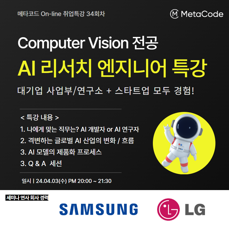 🔥 6년차 컴퓨터비전 AI 리서치 엔지니어 현직자 특강에 초대합니다 :)