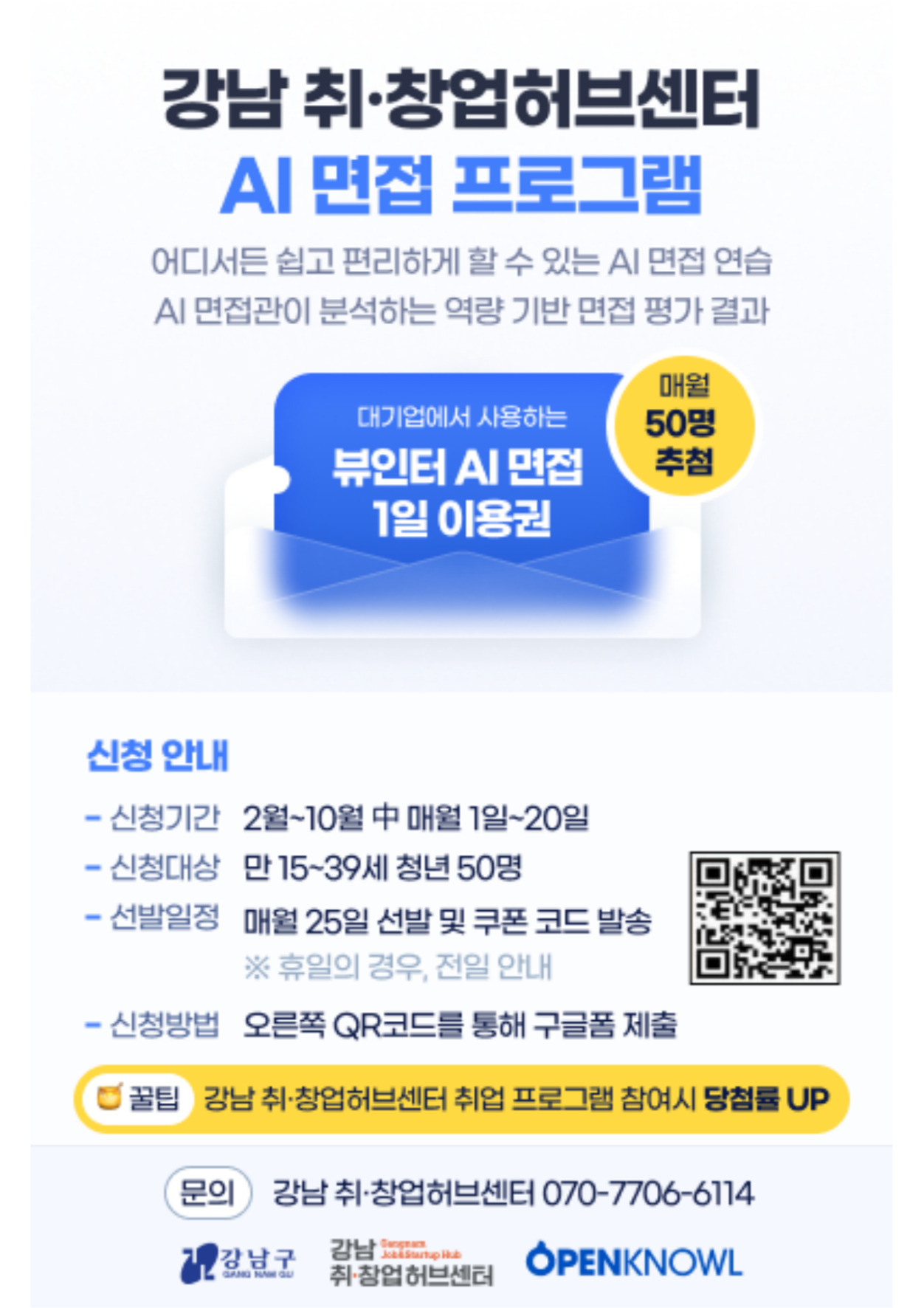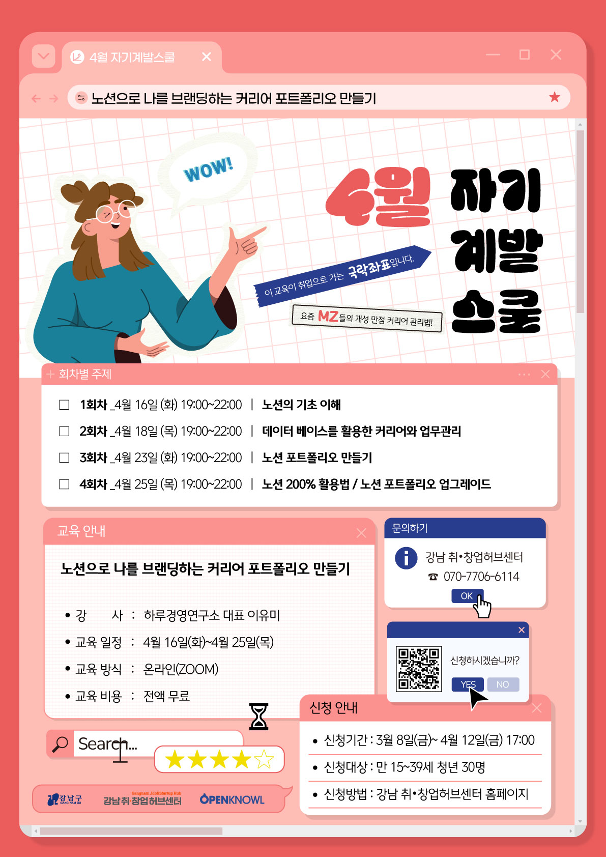 [(주)오픈놀] 강남 취·창업허브센터 4월 취업프로그램 참여자 모집