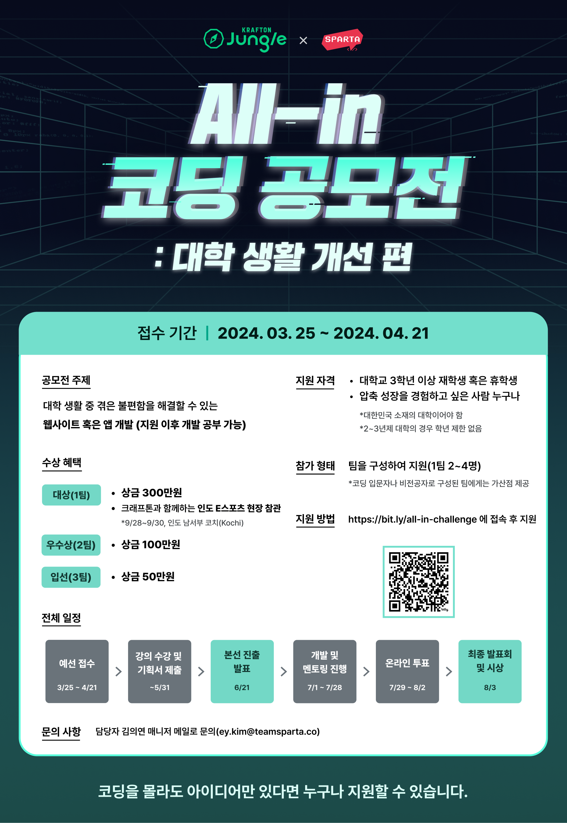 스파르타코딩클럽X크래프톤 정글 ‘All-in 코딩 공모전: 대학 생활 개선 편’