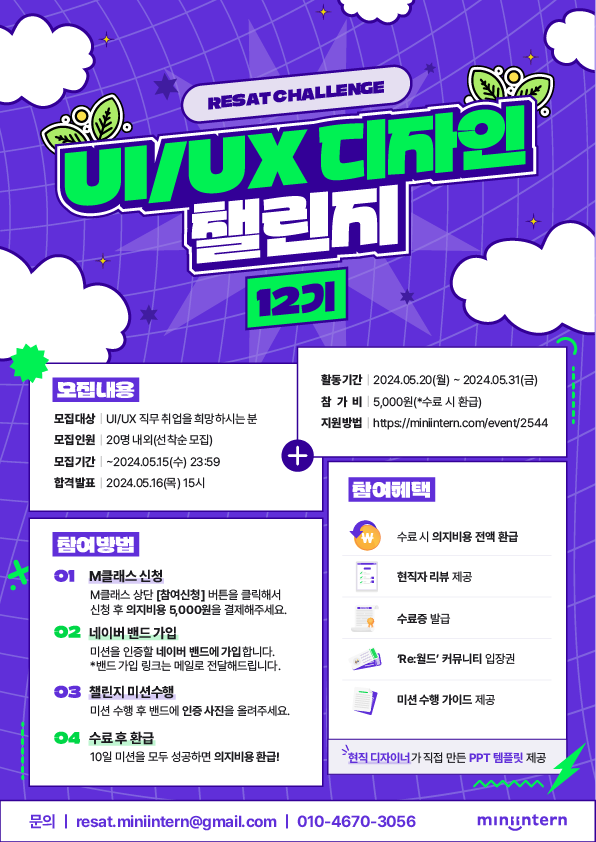 [오픈놀/RESAT] 현직자 피드백으로 디자인 포트폴리오 레벨업을 하고 싶다면? UIUX 디자인 챌린지에 도전해보세요!(~05/15)