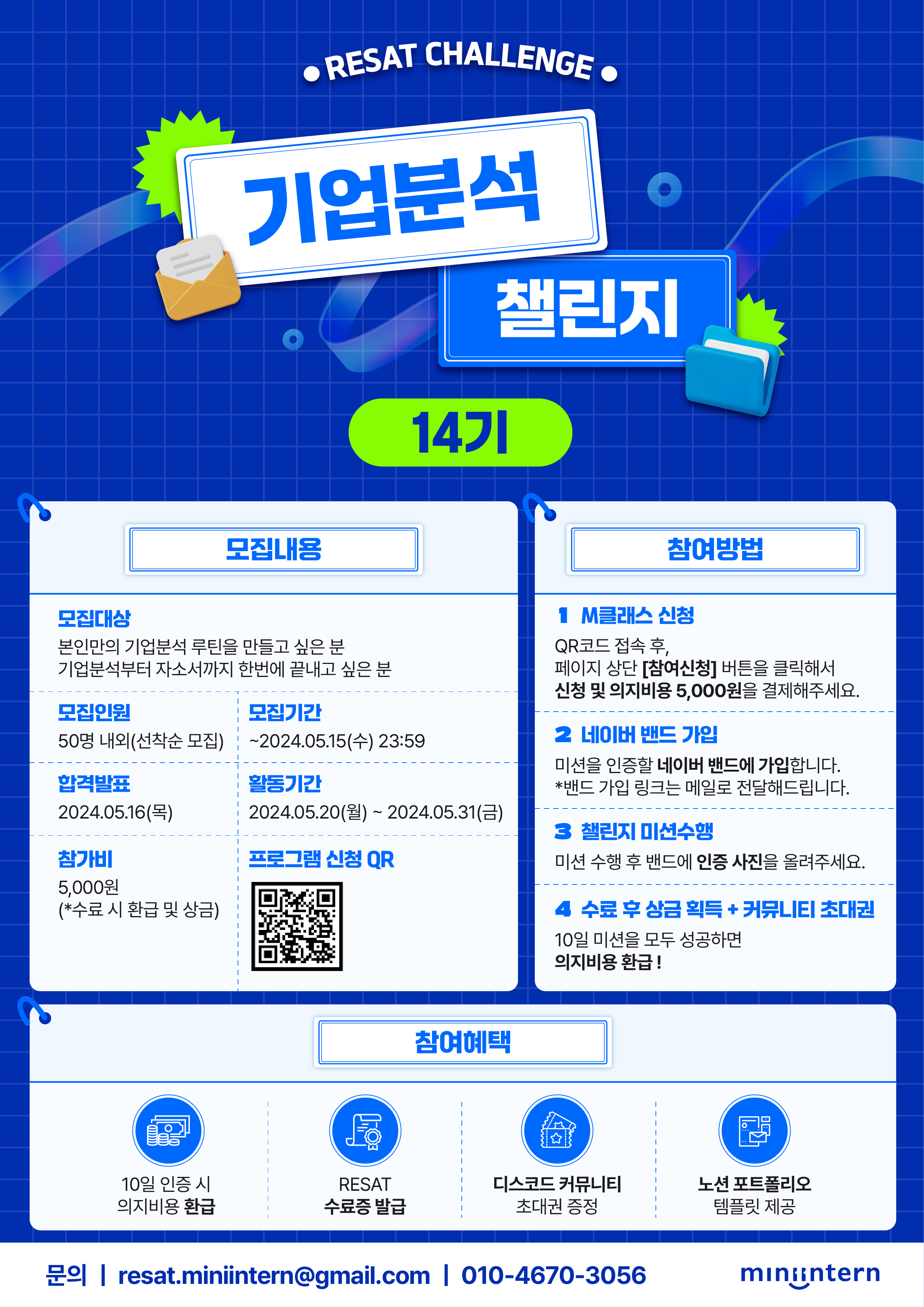 지금 바로 <RESAT 기업분석 챌린지 14기>에 도전하고
