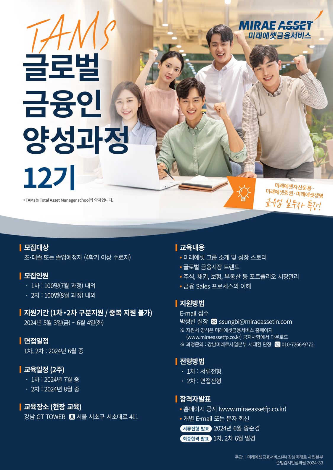 [미래에셋금융서비스 TAMS 글로벌금융인양성과정 12기 모집]